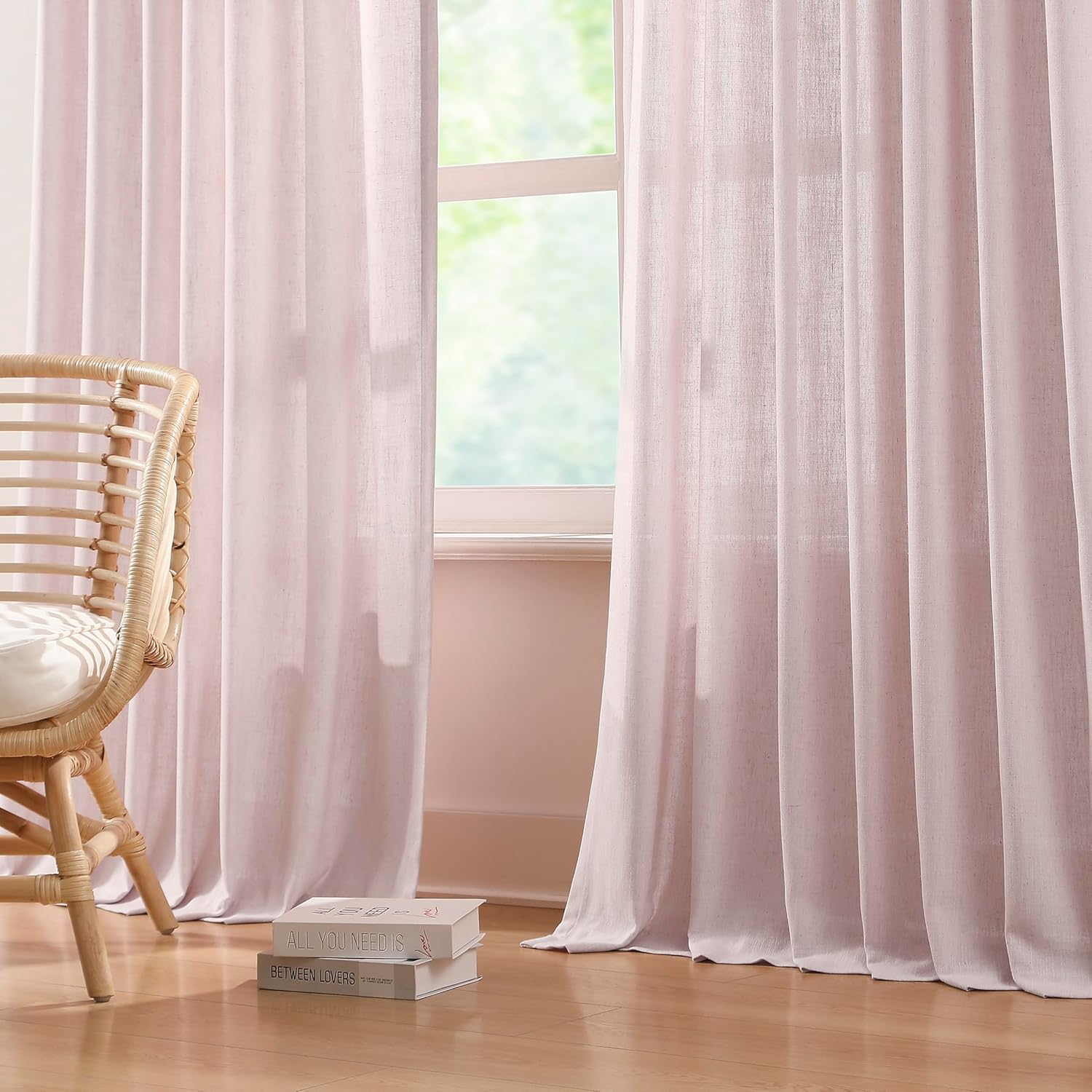 - Pinch Pleats Design:Each pale pink curtain panel with 10 pinch pleats generates modern and luxury feel.Linen curtains provide a natural,and textured look that complements a variety of interior styles.By offering linen curtains in various colors,patterns,and lengths,we can cater to customers looking for a casual yet sophisticated window treatment.Hanging these pinch pleat curtains to elevate your windows and increase the aesthetic value to any spaces,bedroom,living room,nursery,office,etc.