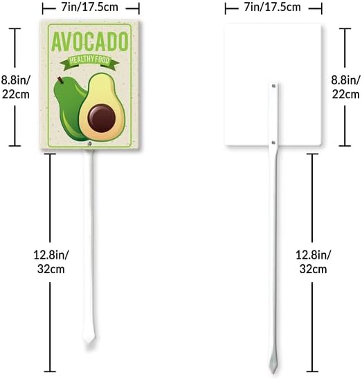 - [Extra large size] The plant tags total height 21.6", Width 7“ , Thickness is 0.07". The extra large size of the label makes the graphics are easy to read and attractive. Ther are thick, tall, and sturdy, and go into the ground easily