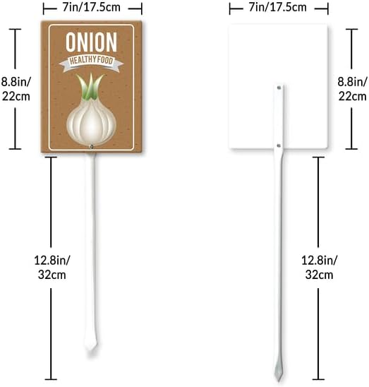 - [Extra large size] The plant tags total height 21.6", Width 7“ , Thickness is 0.07". The extra large size of the label makes the graphics are easy to read and attractive. Ther are thick, tall, and sturdy, and go into the ground easily