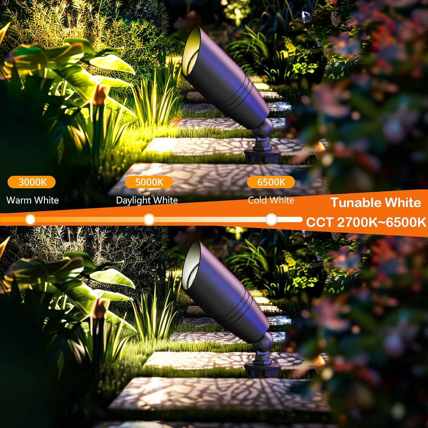 - CCT Color Temperature Changing: This 12V landscape lights comes in color temperatures adjustable kelvin 2700k-6500K tunable white from warm to cool. app or remote or voice control color changing/dimming/tunable white. Ideal for illuminating the house,garden, yard, patio,fence by creating ambient lighting. movie theater colors create elegant lighting during festive like christmas and halloween