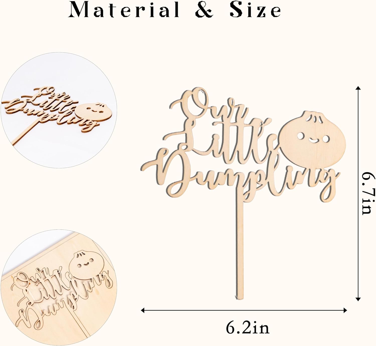 Little Dumpling Wood Cake Topper - Baby Shower Party Decor, Dumpling Themed Party Supplies