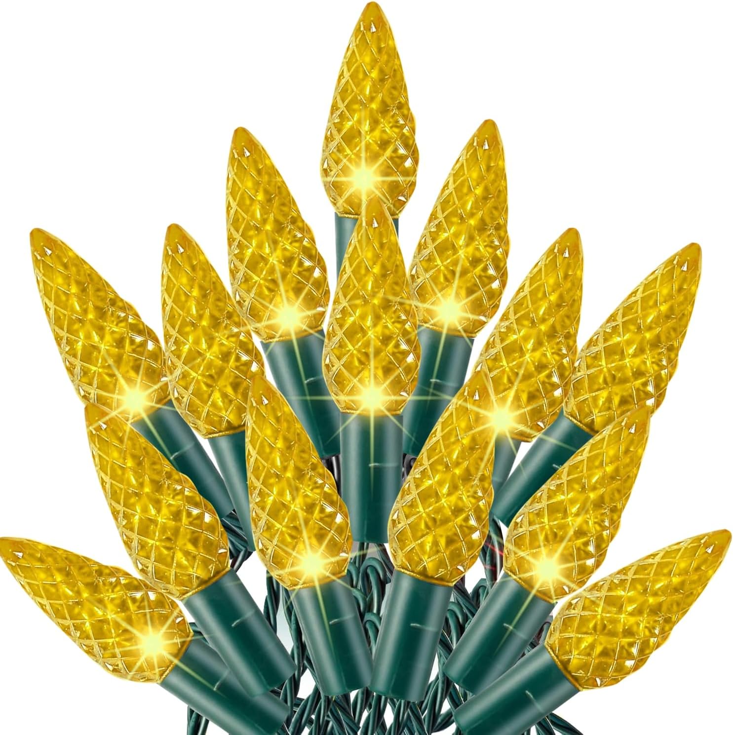 Dazzle Bright C6 Christmas String Lights, 100 LED 33 FT Waterproof Connectable Green Wire Fairy Lights, 8 Modes Christmas Lights for Indoor Outdoor Home Garden Yard Xmas Tree Decorations (Yellow)