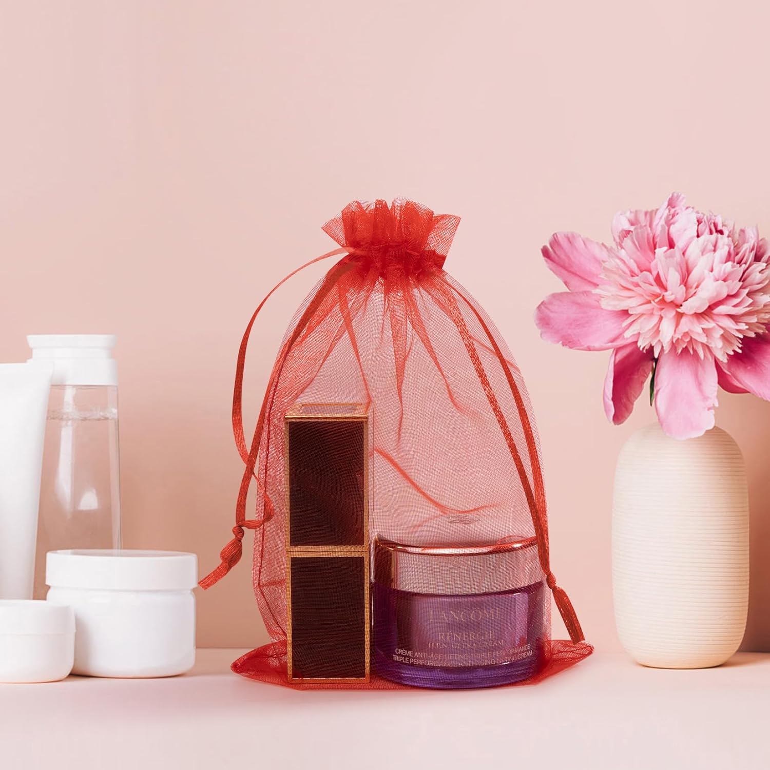 50 Pcs 3x4 Inch Organza Bags, Mesh Drawstring Treat Pouch Bags for Party Favor Wedding (Red)