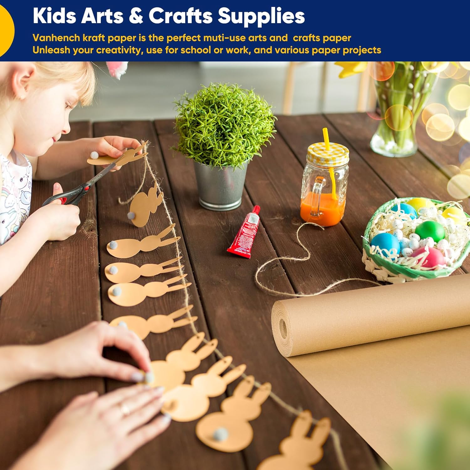 Vanhench 17.5" x 3600" (300') Brown Kraft Paper Roll, Color Art Kraft Craft Paper for Bouquet Flower Birthday Wrapping Crafts Packing, Poster Bulletin Board Paper Floor Covering Table Runner