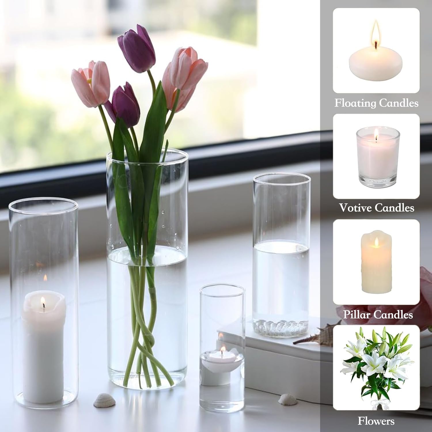 PHOSPHOR 24 PCS Glass Candle Holder - Hurricane & Pillar Candle Holder, Clear Glass Cylinder Vase for Centerpieces, Wedding & Party Decoration