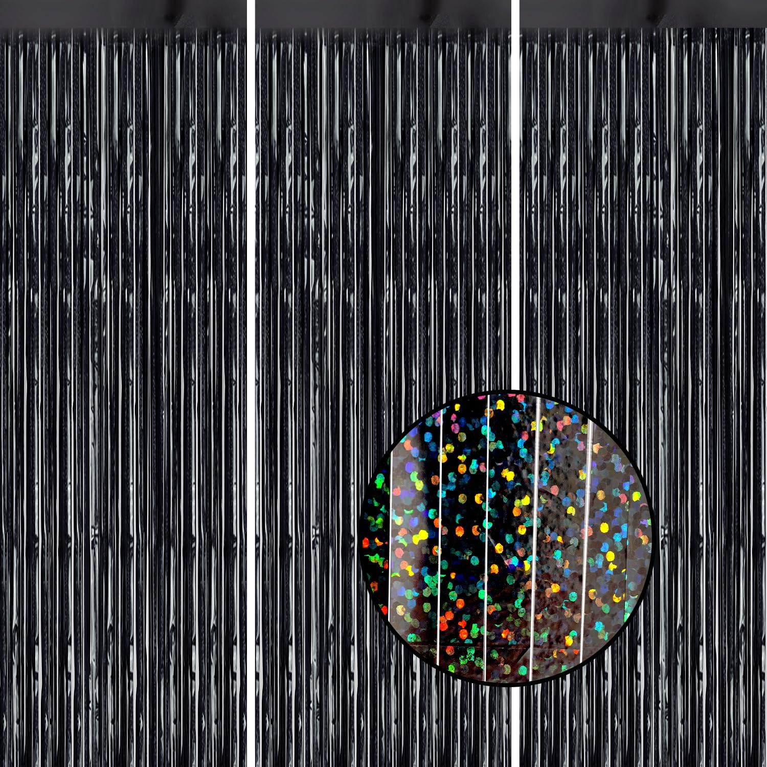 3 Pack Foil Fringe Backdrop - Laser Black Shiny Tinsel Curtains for Party Decoration/Photo Booth Props - 3.3x8.2 FT Metallic Foil Backdrop for Birthday, Wedding, Graduation, Christmas.