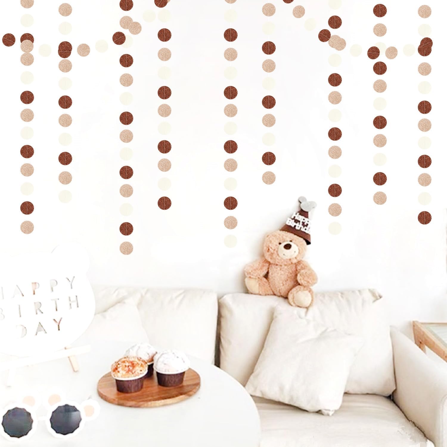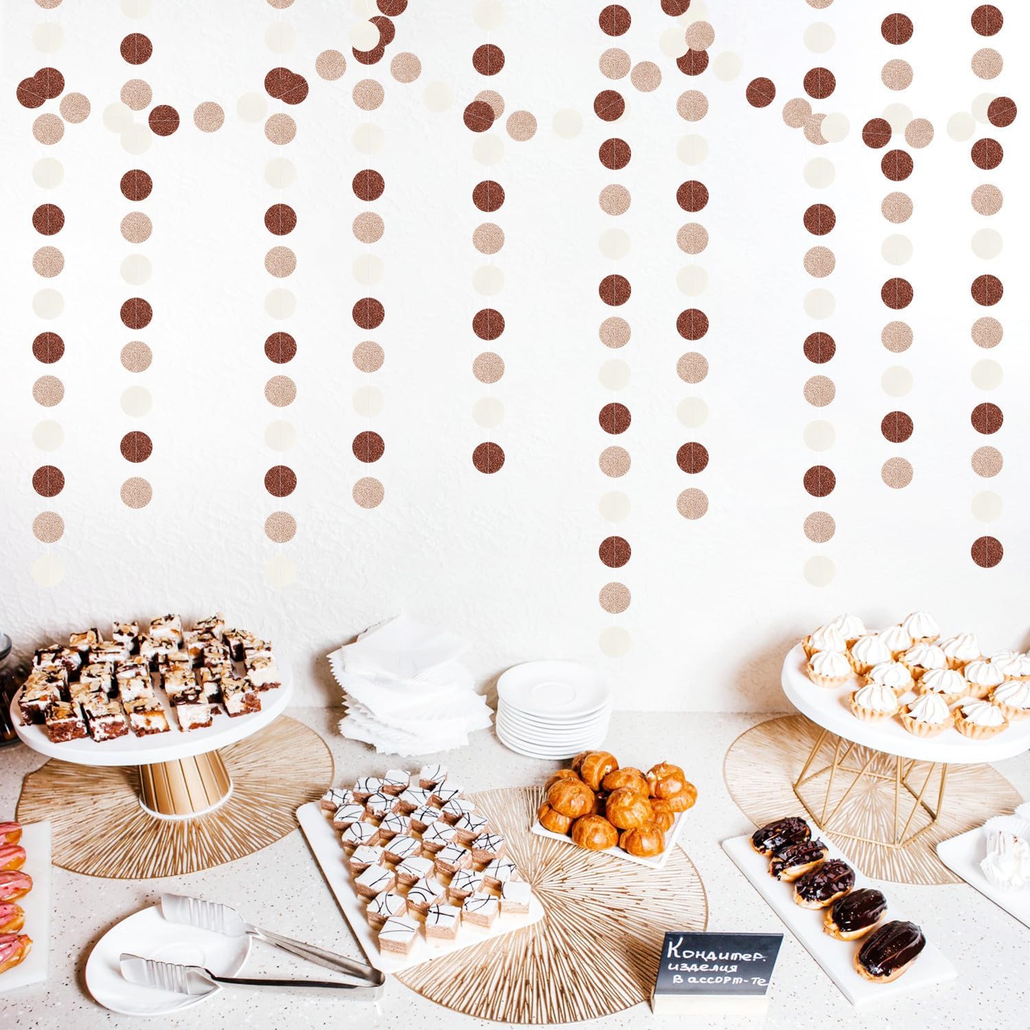 - 【Brown Champagne Gold Party Decorations Kit Includes】The party garlands includes 4pcs paper garlands, each backdrop bunting is 13 feet/ 4 meters long, total length is 52 feet/16 meters. Every Banner has 40pcs dots which the size is 2".