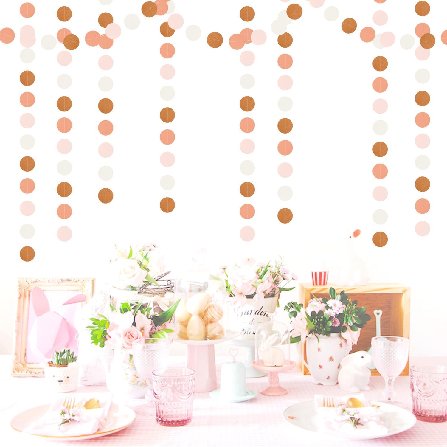 - 【Pink Brown Peach Party Decorations Kit Includes】The party garlands includes 4pcs paper garlands, each backdrop bunting is 13 feet/ 4 meters long, total length is 52 feet/16 meters. Every Banner has 40pcs dots which the size is 2".