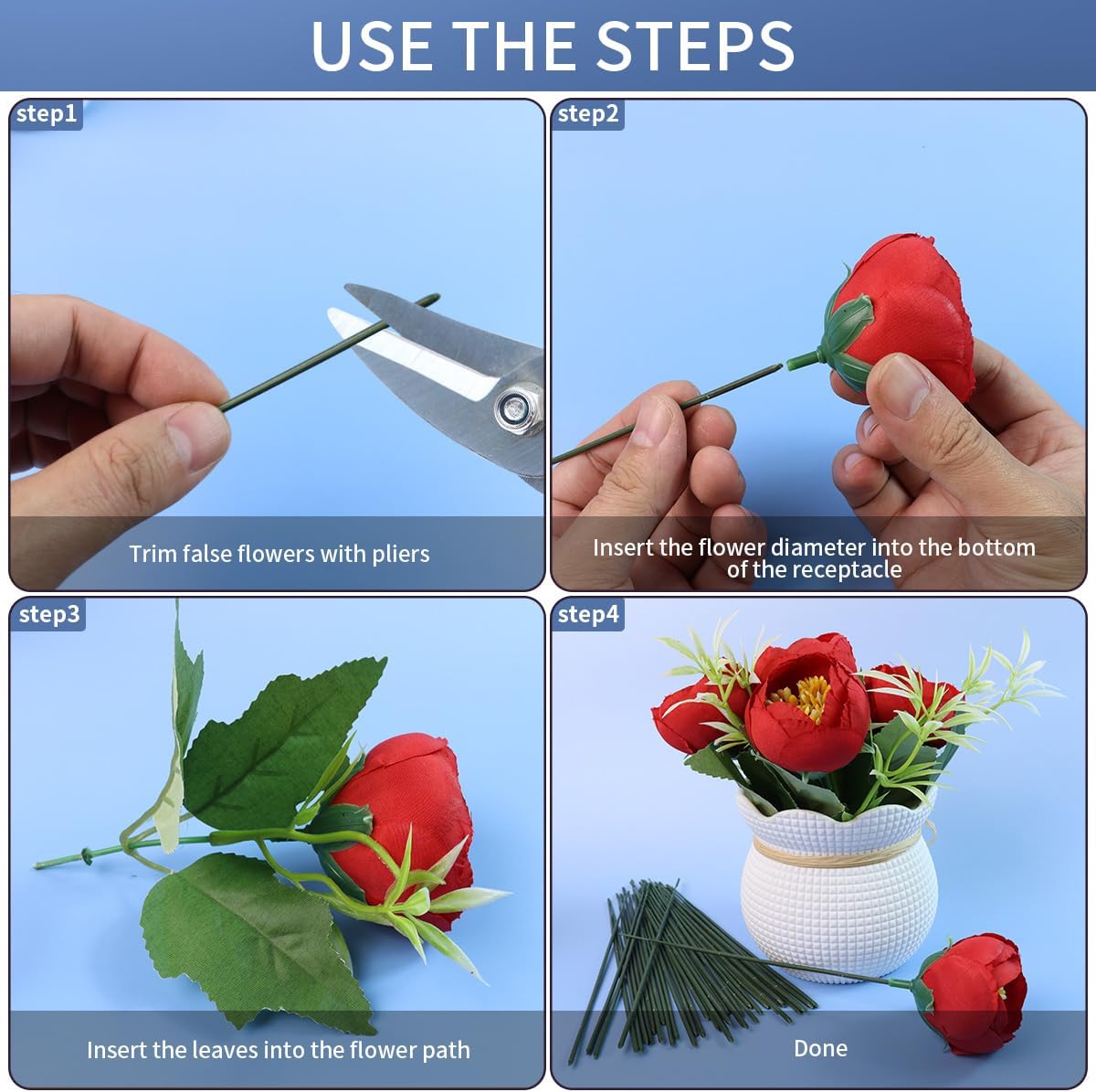 - DIY:these floral stem wires ideal for creating beautiful bouquets, artificial flower stems, and other floral crafts;i believe you can create amazing results