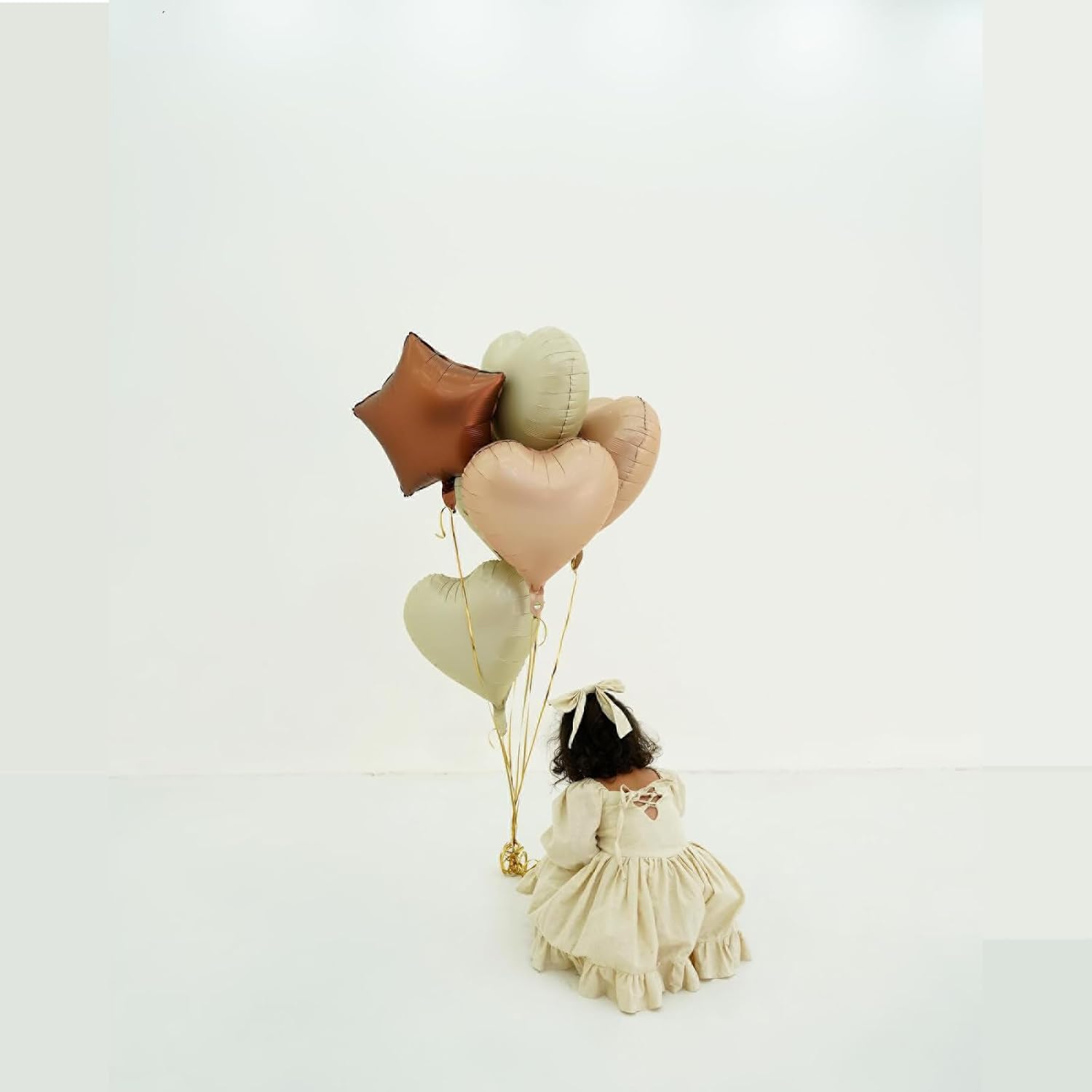 - 【12PCS HEART BALLOONS】Package include 6pcs cream white heart foil balloons,6pcs caramel heart foil balloons,1pc straw.Large enough to help you better decorate your party.