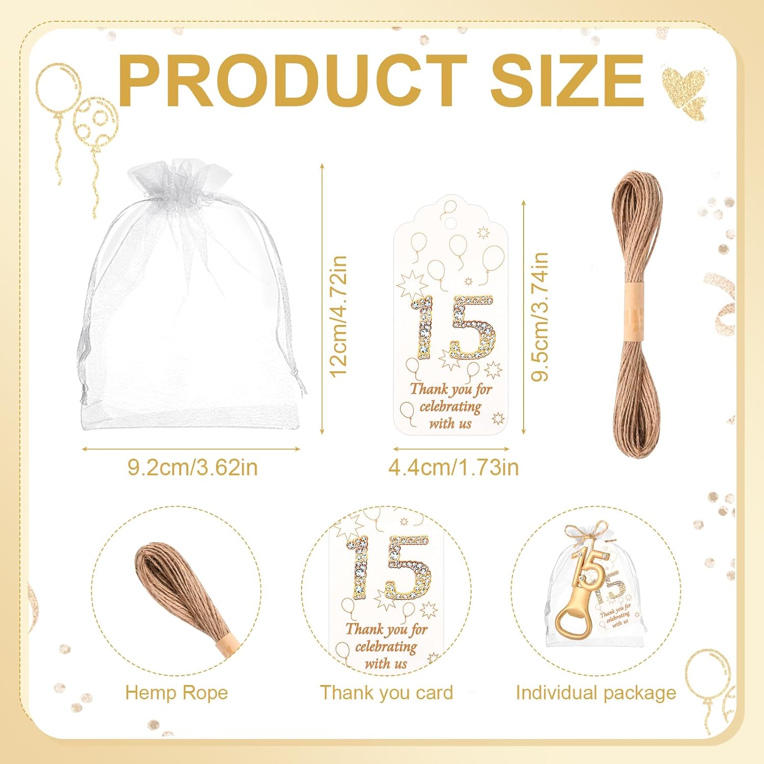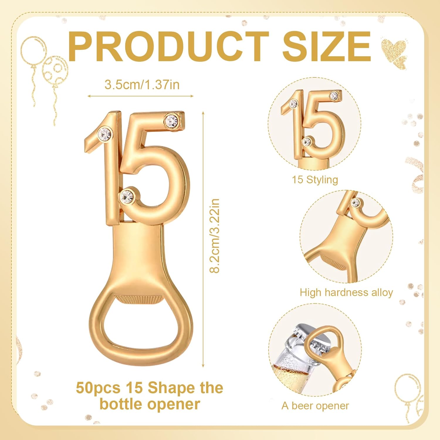 - Versatile Use: Our 15th Gold Bottle Openers for 15th Birthday Party Favors are perfect for various occasions, including weddings, anniversaries, and birthday parties. Whether you're celebrating a milestone event or simply want to show appreciation to your guests, these favors are versatile enough to fit any theme