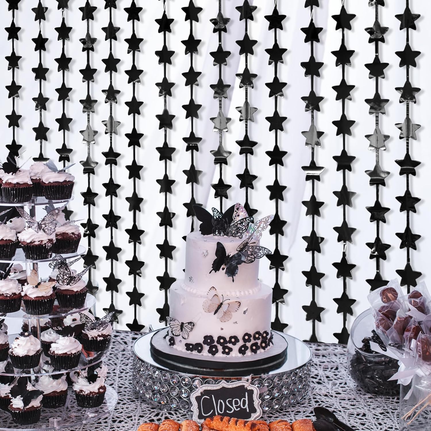 - 🖤【 IT'S TIME TO CELEBRATE! 】: Our 2 pack Black Stars foil fringe curtains, Large size (width x drop) 3.3 x 6.6 ft each, perfect photo backdrop for various parties.