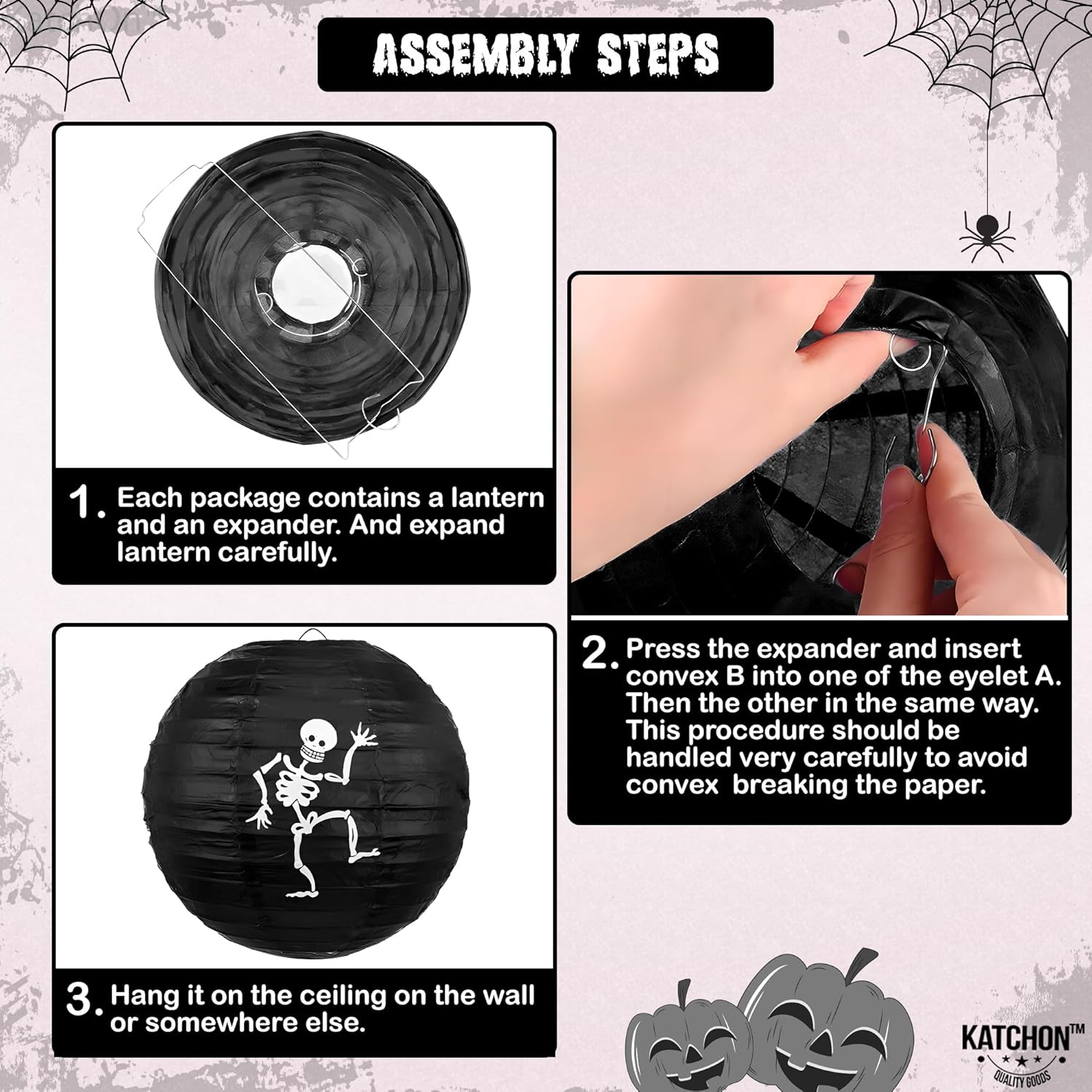 - VERSATILE | EASY TO ASSEMBLE : Our Indoor Halloween Honeycomb and halloween banner indoor are incredibly versatile, a perfect fit for a variety of settings. It's easy to assemble. Each item takes just a few minutes to put together and hang up. Simply unfold each item and secure with the self-adhesive back of the fan or use the paper clips provided. Each accessory has a lanyard at the top and the lantern has a hook for easy hanging halloween decorations, halloween party decorations, scary halloween decorations, indoor halloween decorations, ghost party decorations.