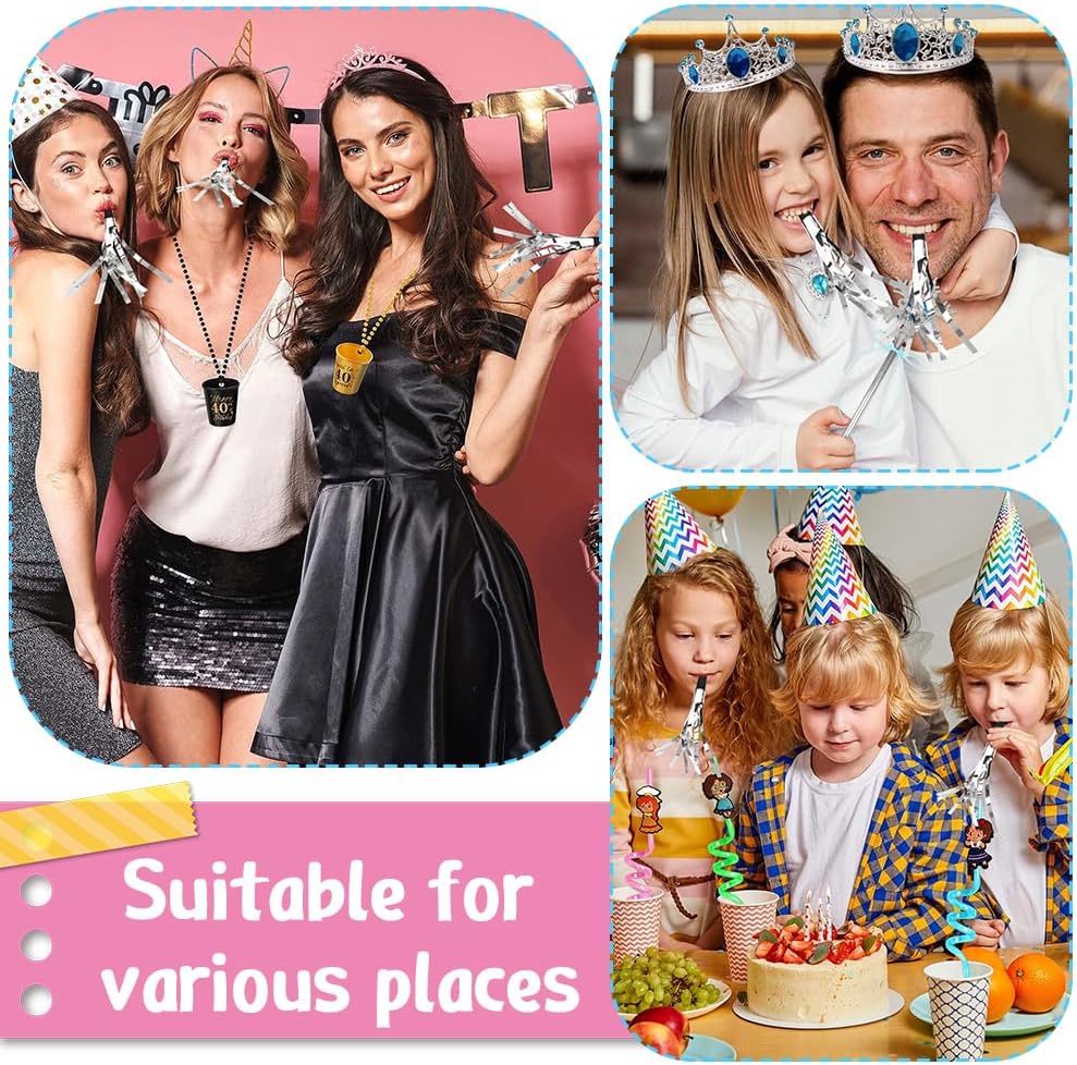 - 24 PCS Party Noise Makers: Our noise makers are the perfect addition to any celebration! With their vibrant colors and fun sounds, they are sure to liven up your sporting events, nye party, adult party, gold party, adult birthday party, 50th party, surprise party, new years party, funny party, Halloween party, and new years eve party. adult party favors noise makers for sporting events noise maker party blowers gold party favors party favors for adults party blowers for s party noise makers