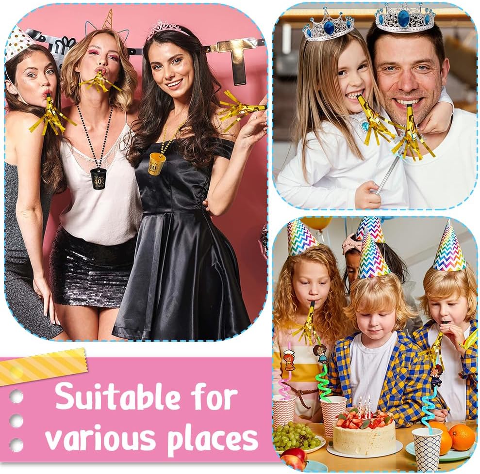 - 24 PCS Party Noise Makers: Our noise makers are the perfect addition to any celebration! With their vibrant colors and fun sounds, they are sure to liven up your sporting events, nye party, adult party, gold party, adult birthday party, 50th party, surprise party, new years party, funny party, Halloween party, and new years eve party. adult party favors noise makers for sporting events noise maker party blowers gold party favors party favors for adults party blowers for s party noise makers