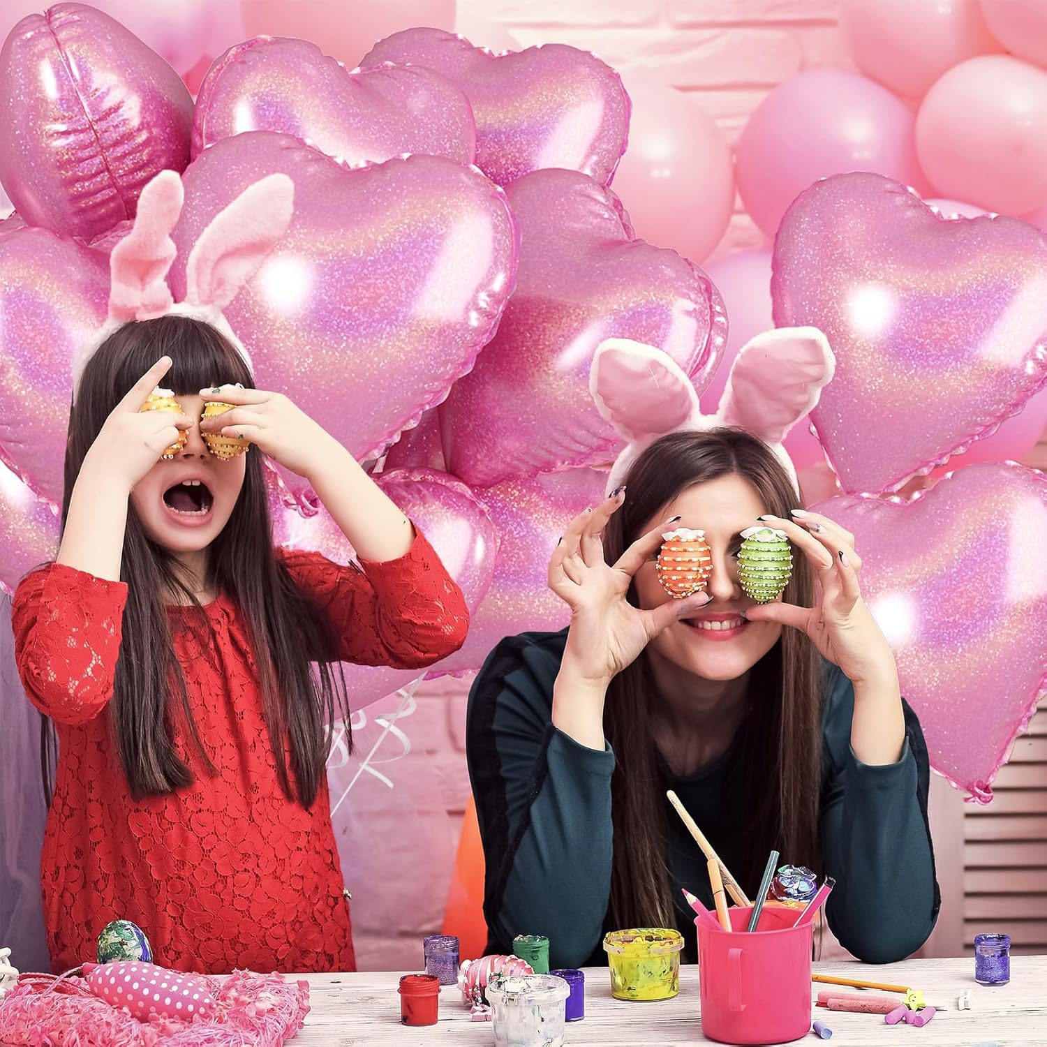 - Easy To Use: These glitter pink heart shaped birthday balloons can be filled with air or helium (inflate to 85%-90%, to prevent it from becoming too large and exploding). The valve seals automatically when inflated, and the gas inside can be emptied with a plastic straw, making them reusable. The set also comes with 10 meters of ribbon, making it easy to decorate your room for your children and spouse.