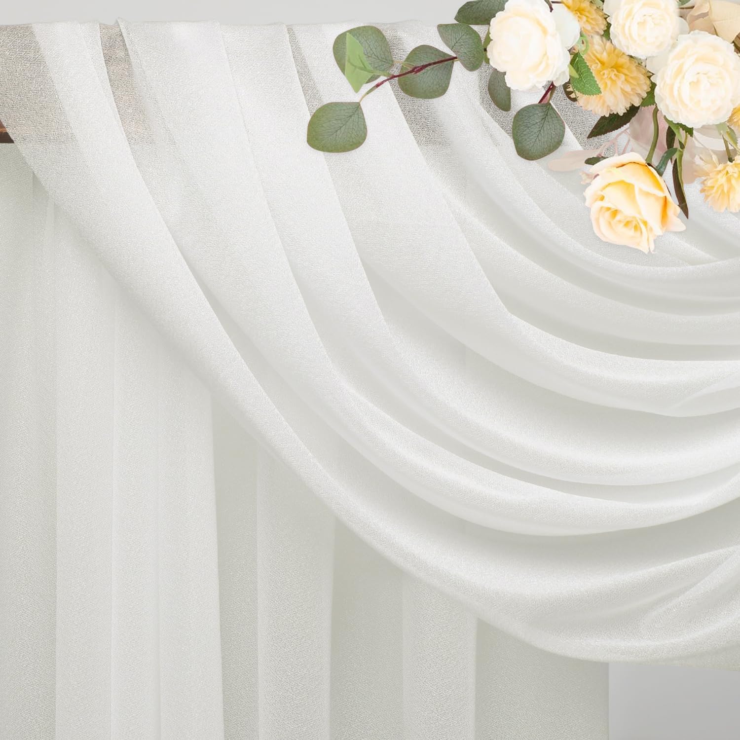 Wokceer Ivory Wedding Arch Draping Fabric Backdrop 4 Panels 28.7" X 20FT Sheer Drapes Fabric for Wedding Arbor Ceremony Party