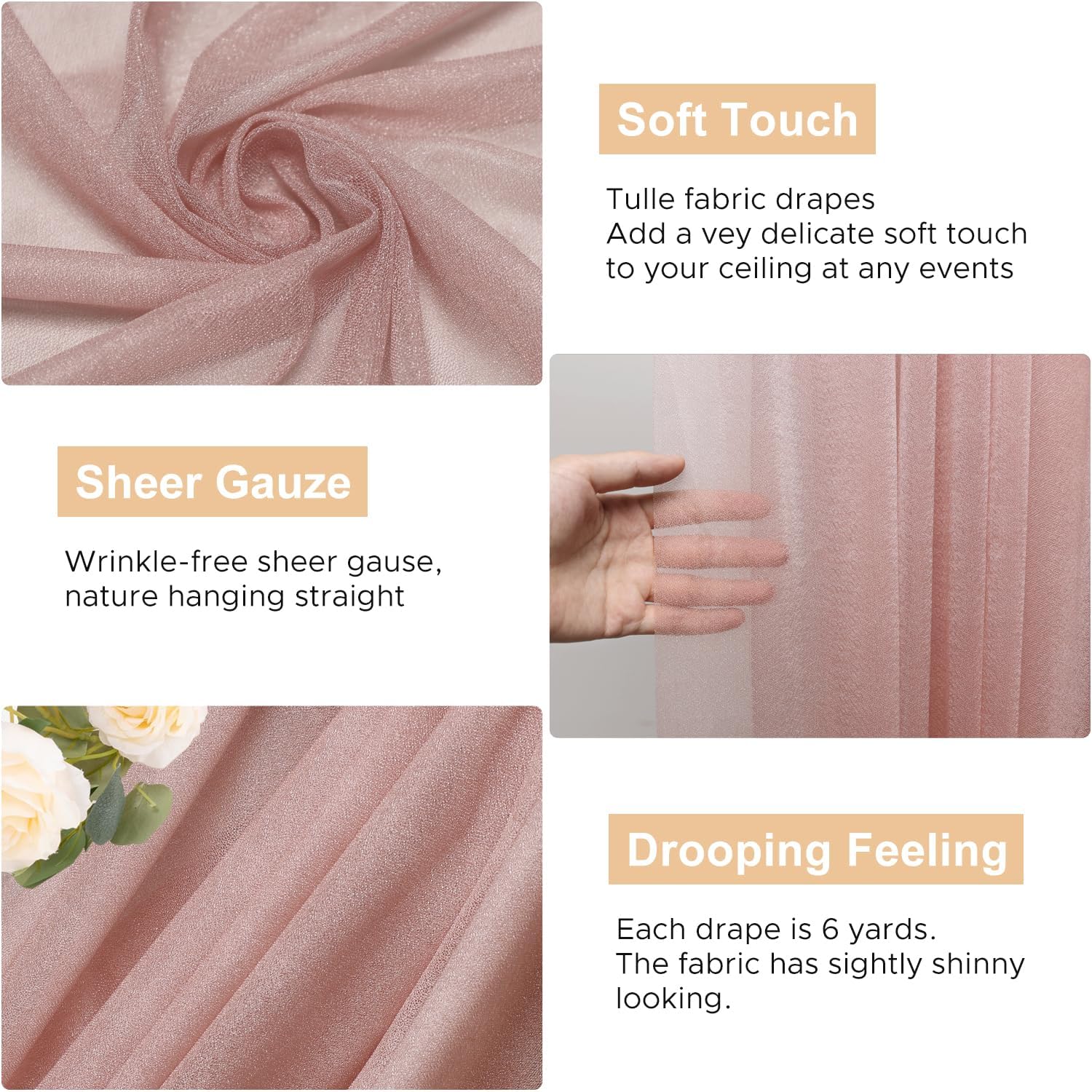 - 【Sheer Arch Drapes Fabric】This polyester fabric drapes beautifully to transform any arch into a romantic backdrop for wedding photos and ceremonies