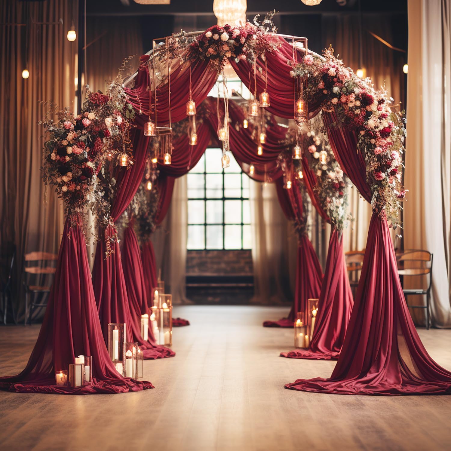 Wokceer Burgundy Wedding Arch Draping Fabric Backdrop 3 Panels 28.7" X 20FT Sheer Drapes Fabric for Wedding Arbor Ceremony Party