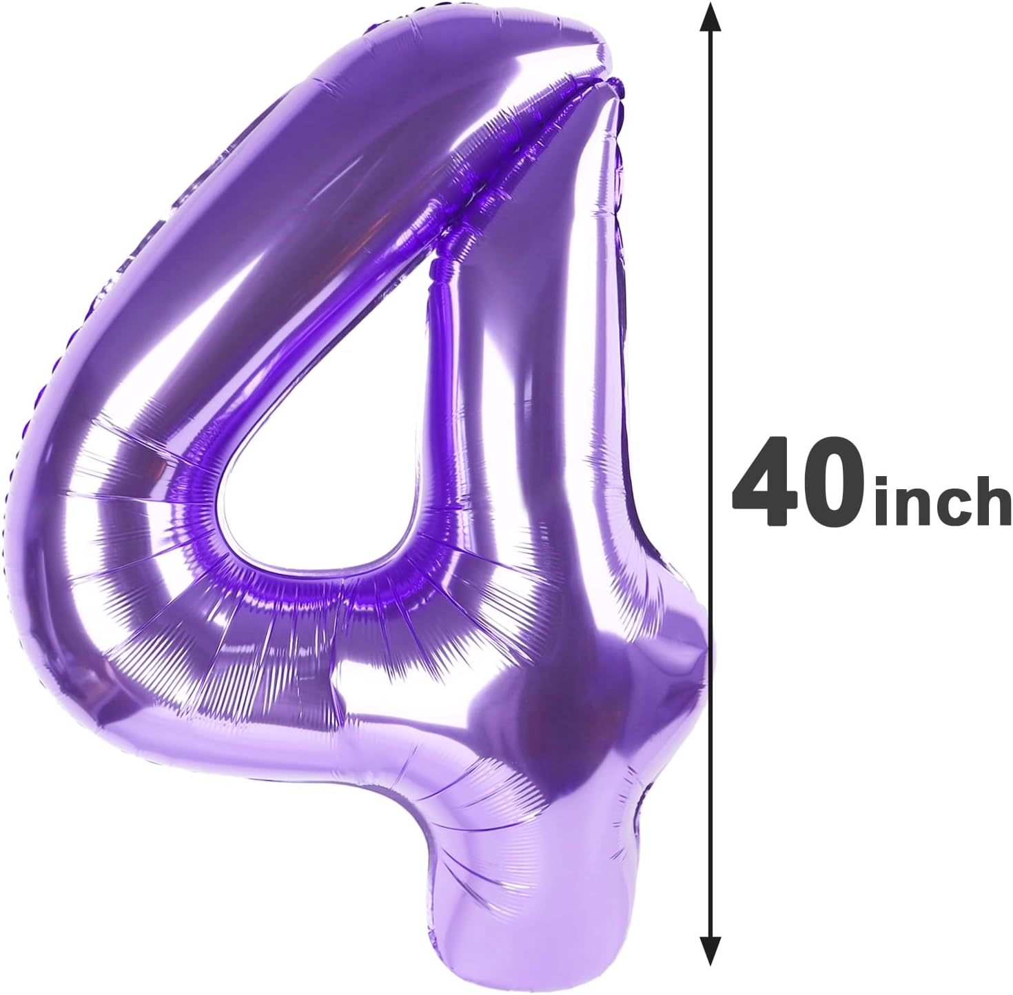- 1.Noble Romantic Purple Number Balloons: You will receive an uninflated 40 inch 4 purple number balloon. Balloons are always the best statement of romance surprise. Big four balloon symbolize eternal magical, adding glamour to purple birthday parties. Elegant purple and huge size make purple number 4 balloon a highlight of special parties. Choose one or more numbers from 0-9 number balloon, and use 4 14 24 34 40 44 54 64 84 94 birthday balloons to create a lively charming party!