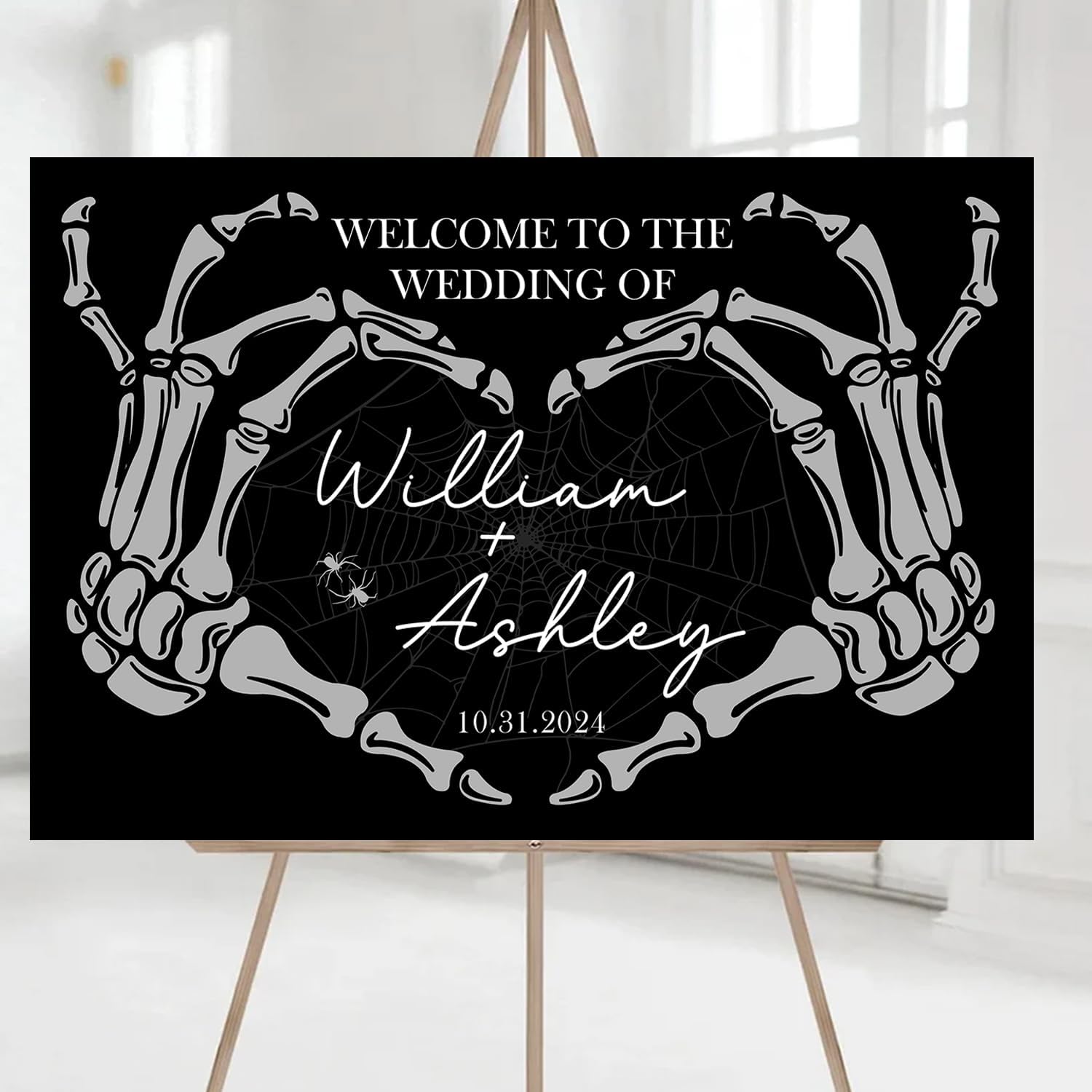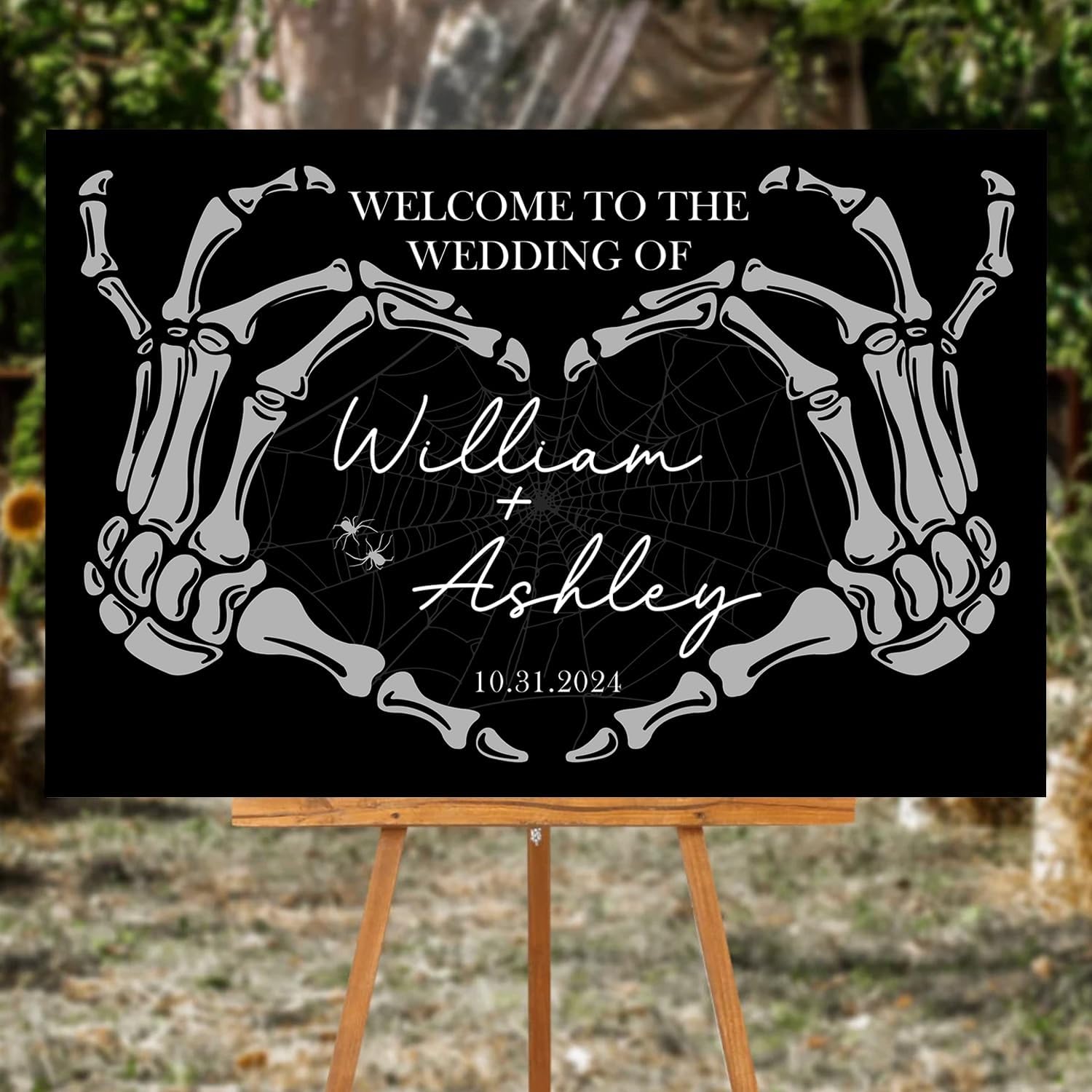 - A stunning choice for those planning a Gothic-inspired wedding or a Halloween-themed celebration. Whether you're exchanging vows on All Hallows' Eve or simply love the allure of Gothic aesthetics, this welcome sign will captivate your guests and make a bold statement.