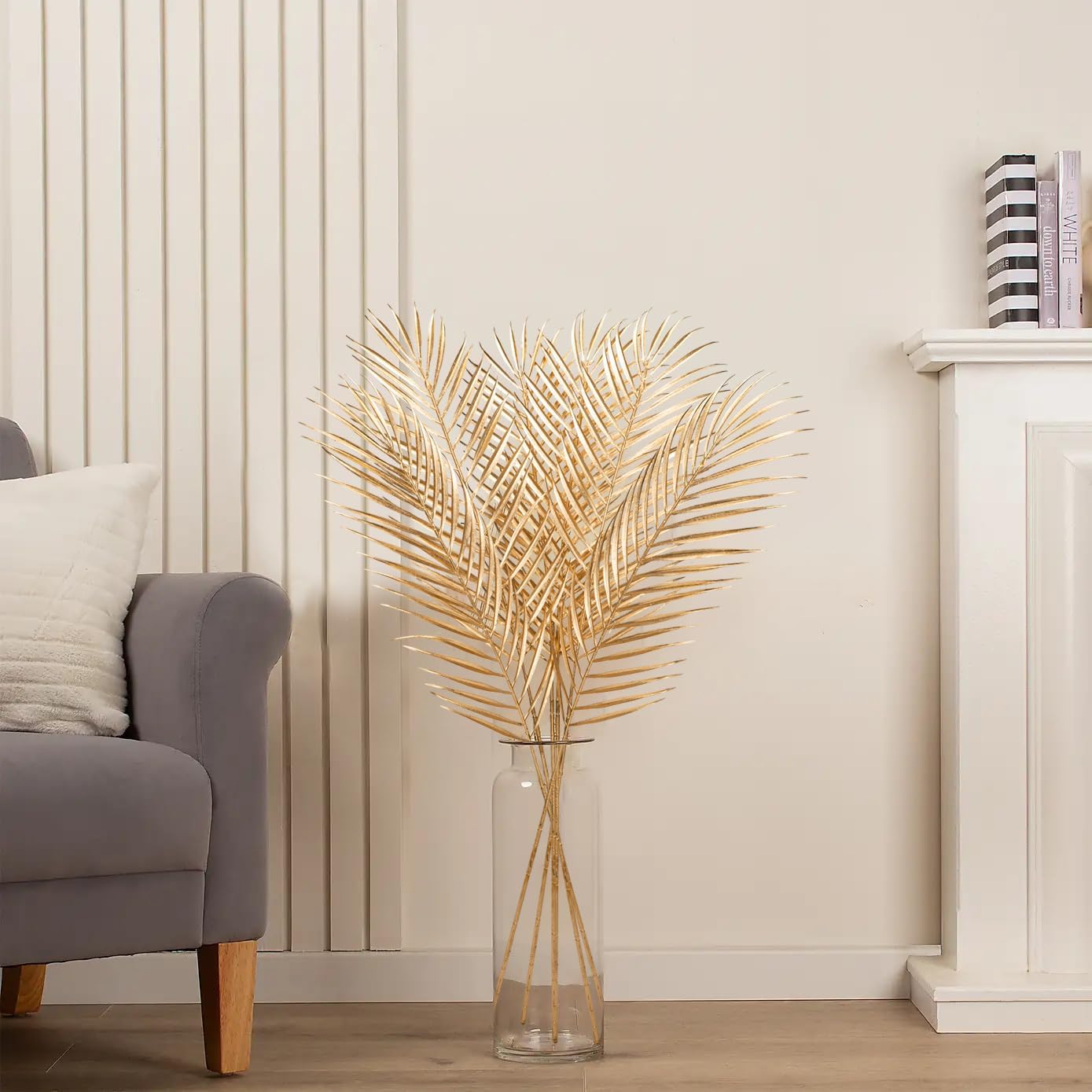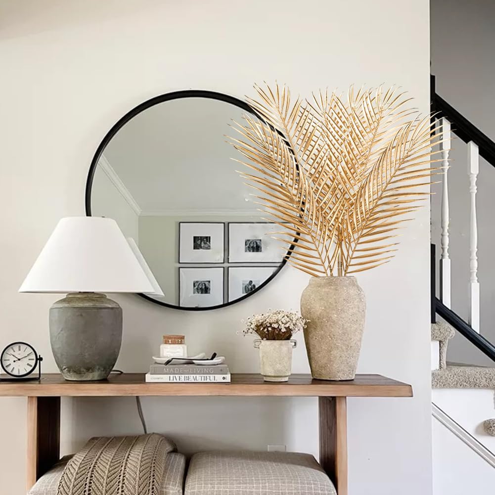 - Premium Material- Artificial gold palm leaf made of durable fabric, the surface of the leaves is glossy and the veins are clearly printed, Bendable palm stem to fit your vase or adjust the shape make it looks more real.