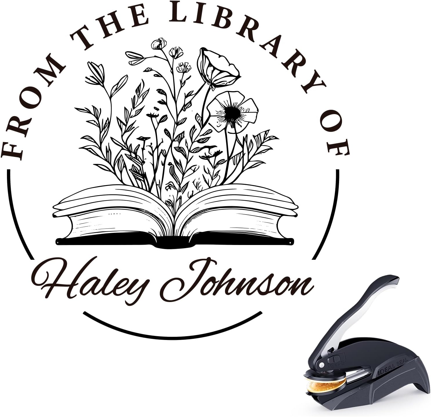 Book Embosser Personalized - Custom Library Embosser Stamp Gifts for Book Lovers, Readers, Teachers (Floral-02)