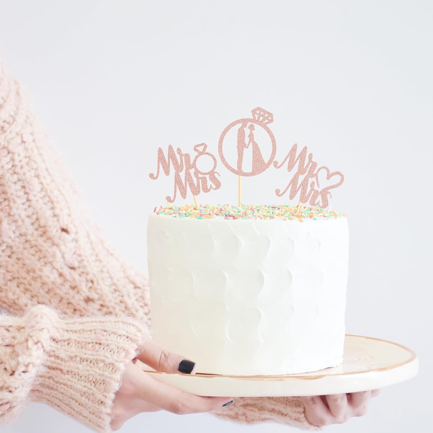 - Package included: 3PCS Rose Gold Glitter Miss to Mrs Cupcake Toppers add "ring"sign. Already assembled so you can insert into wedding engagement party decoration, which make your cake icing on the cake. Size:W 2.3 inch * H 4.72 inch / W 6 cm * H 12 cm(Including Stick)