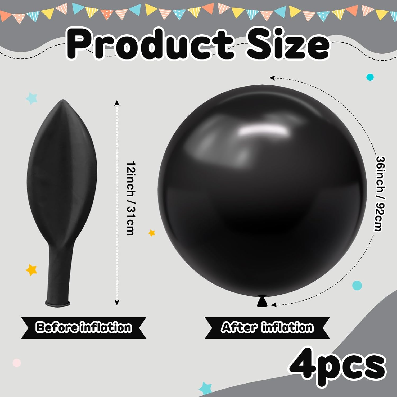 - 【Size& Quantity】 Each sets contains 4pcs 36 inch giant black balloons; big balloons are safe ,heavy thick, bouncy and Eco-friendly latex material which is durable and long-lasting quality ,these big round balloons Thicker and much strong than typical balloons for longer lasting fun.
