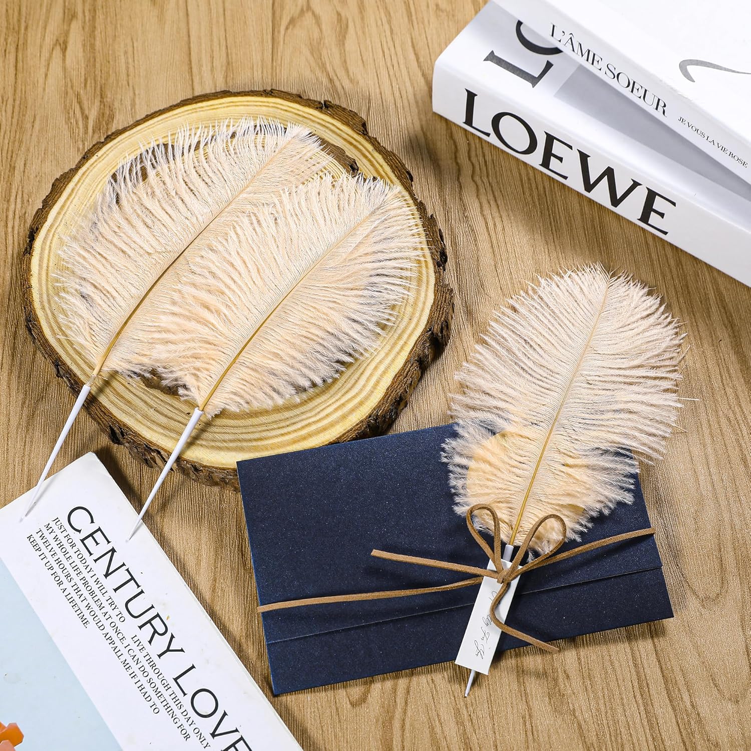- Creative Ostrich Feathers Set: 30 pcs champagne ostrich feathers bulk 6-8 inches, 30 pcs small white sticks 3 inches long. Ostrich feathers kit total length can be up to 9-11 inches