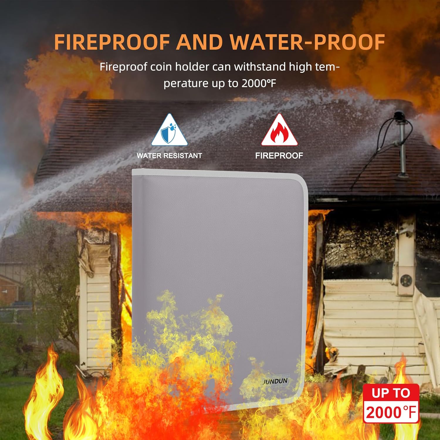 - Fireproof Safe Protection :coin albums for collectors is made of silicone coated material which withstands the temperature up to 2000℉ .It will protect your valuables from the damage in case of fire .Coin collection book for collectors gives you enough time to save your valuables from fire.It is highly recommended that coin collection album is combined with fireproof safe.They will offer you the double fireproof safe protection
