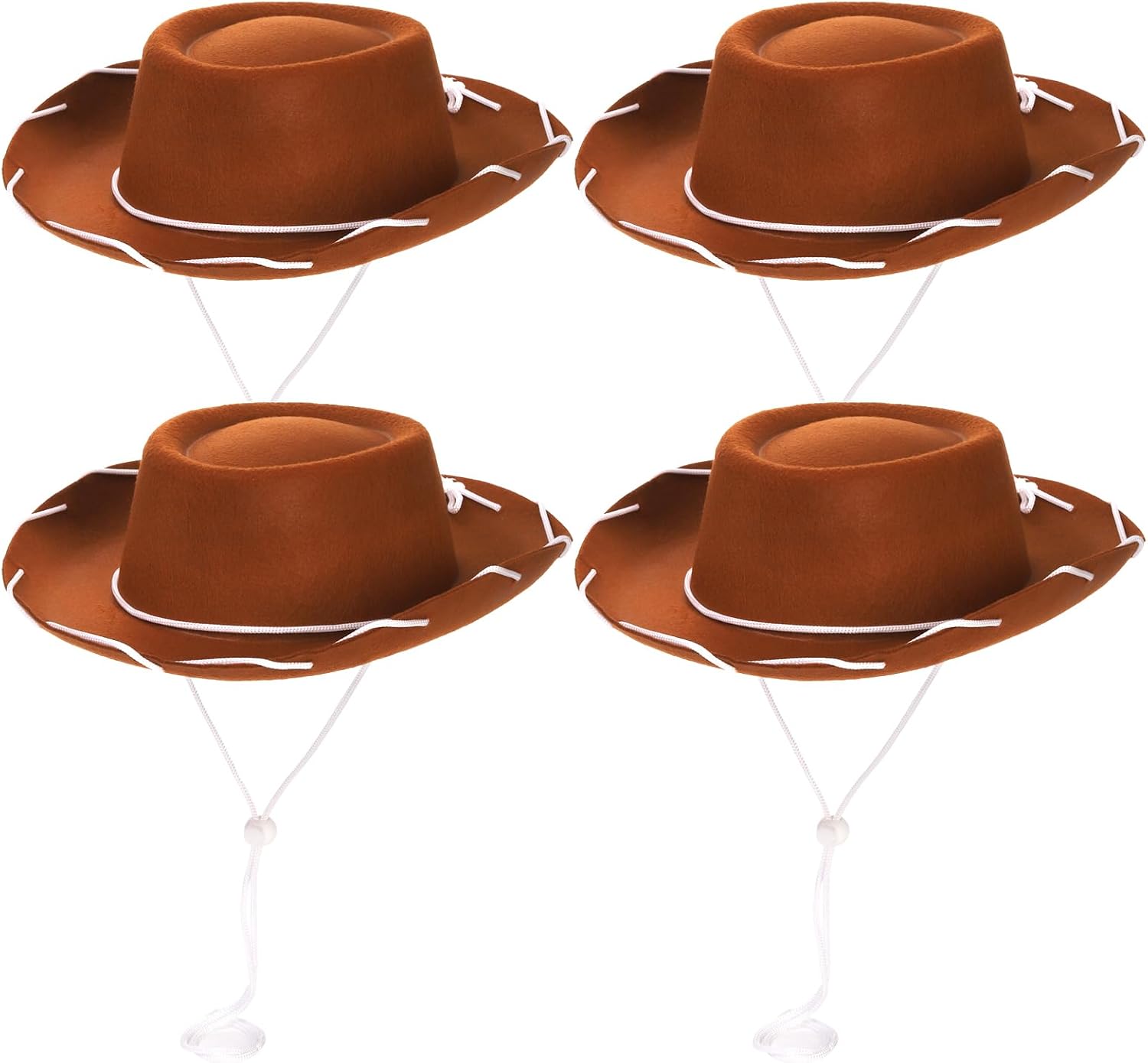 Peohud 4 Pack Felt Cowboy Hat, Small Western Cowgirl Hat, Wide Brim Cowboy Hat with Neck Drawstring, Cosplay Costume Accessories for Halloween Dress Up Party Brown