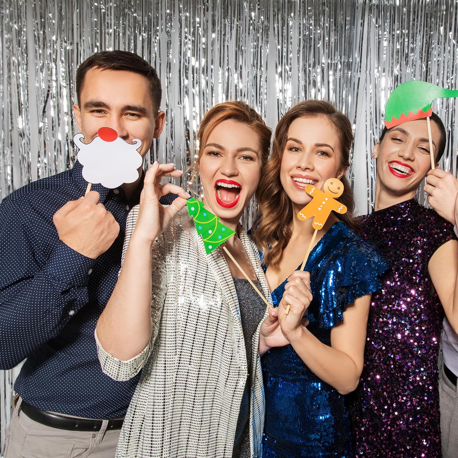 RUBFAC 2 Pack Silver Tinsel Backdrop Party Decorations Foil Fringe Curtains Photo Booth Streamer for New Year Decorations Wedding Birthday Holiday Christmas Celebrations Supplies