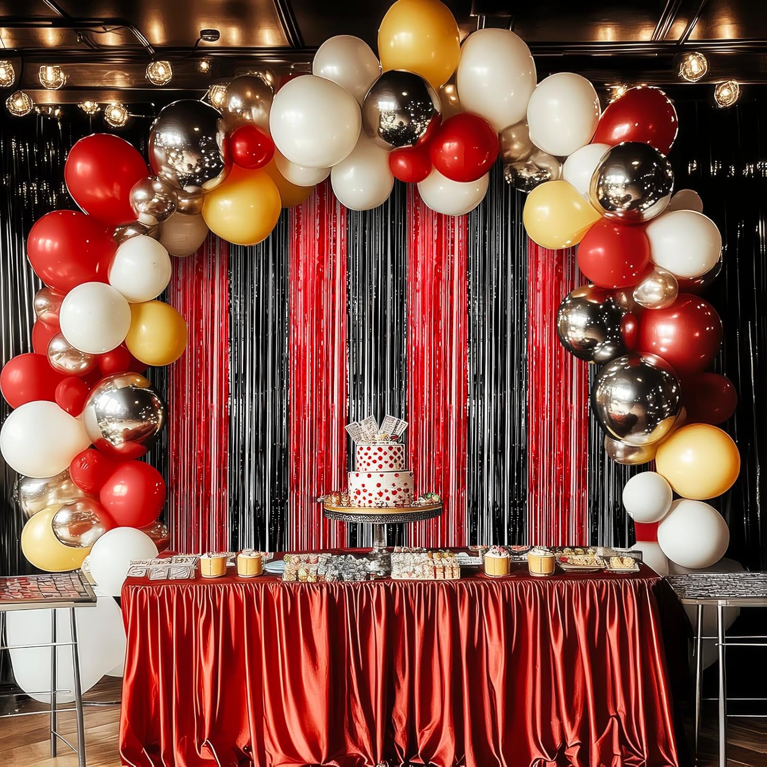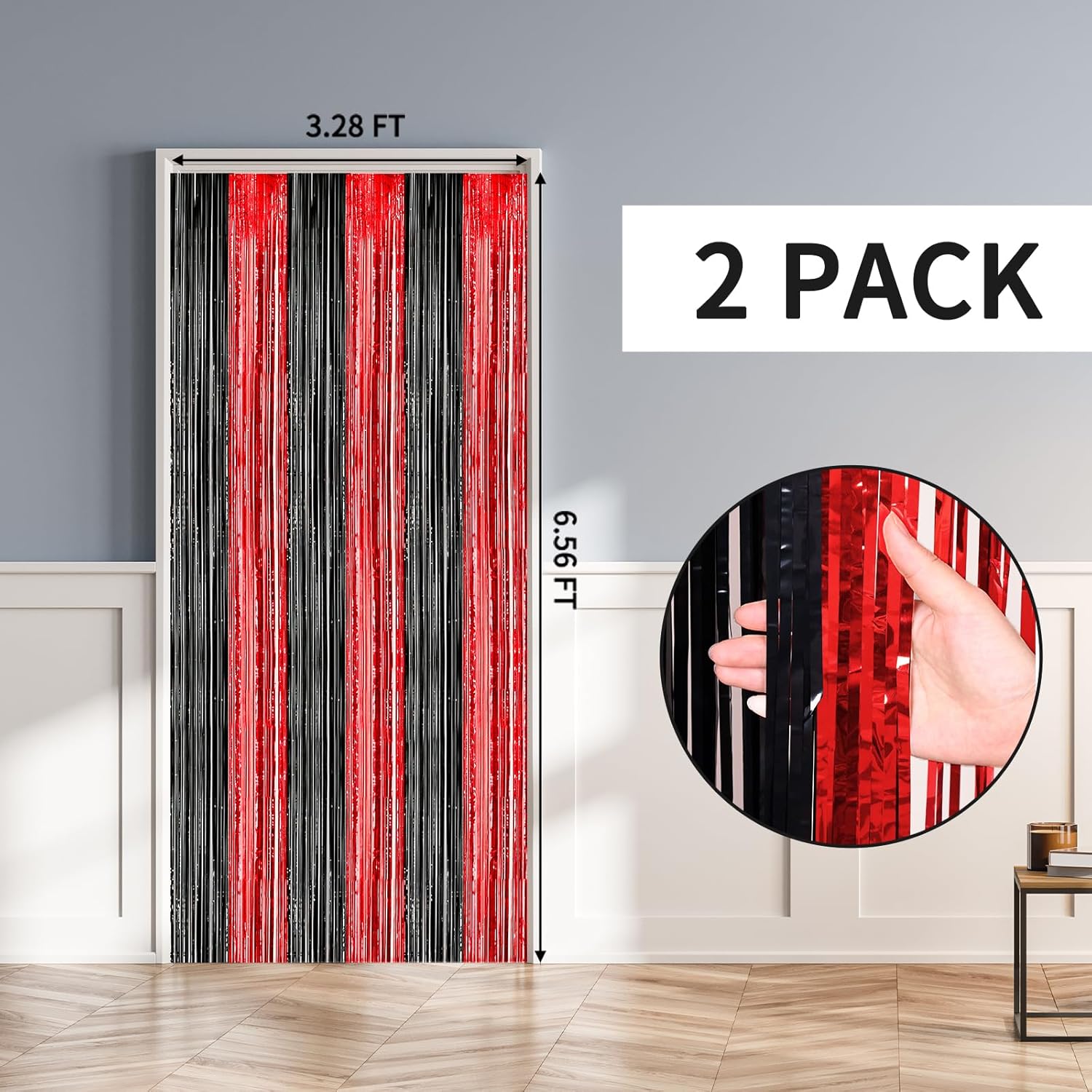 - 【Package Included】2-pack red and black fringe backdrop, Each Pack of Curtains measures 3.28 ft x 6.56 ft, tinsel metallic streamers are Perfect for Doors or Walls, Create Impressive Decorations for Parties, Events and Photo Booths.