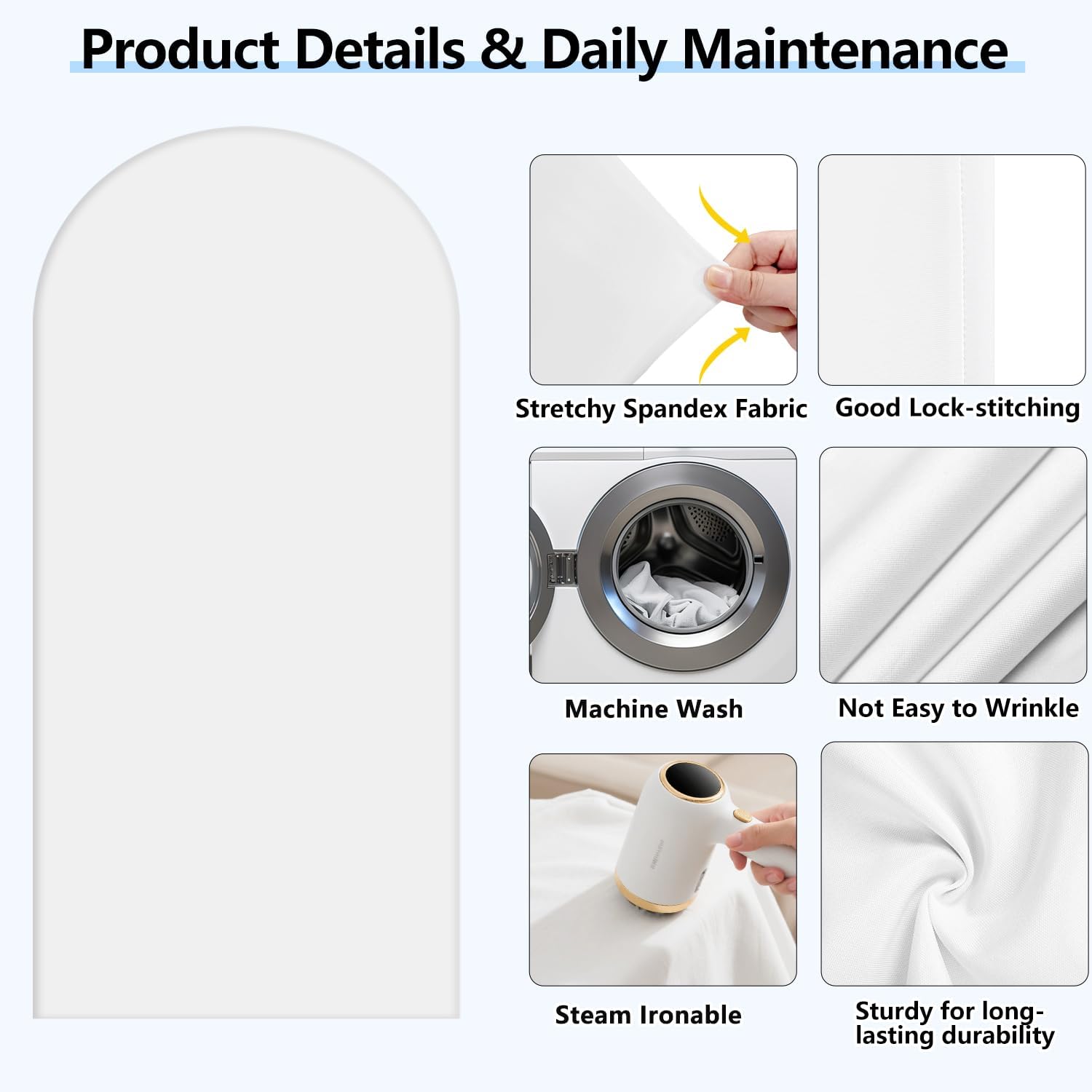 Hemmotop 6.6 ft White Arch Backdrop Cover (No Arch Stand), Spandex Arch Covers Stretchy Backdrop for Party, Wedding, Birthday, Baby Shower, Non-See Through, Reusable for Balloon Arches
