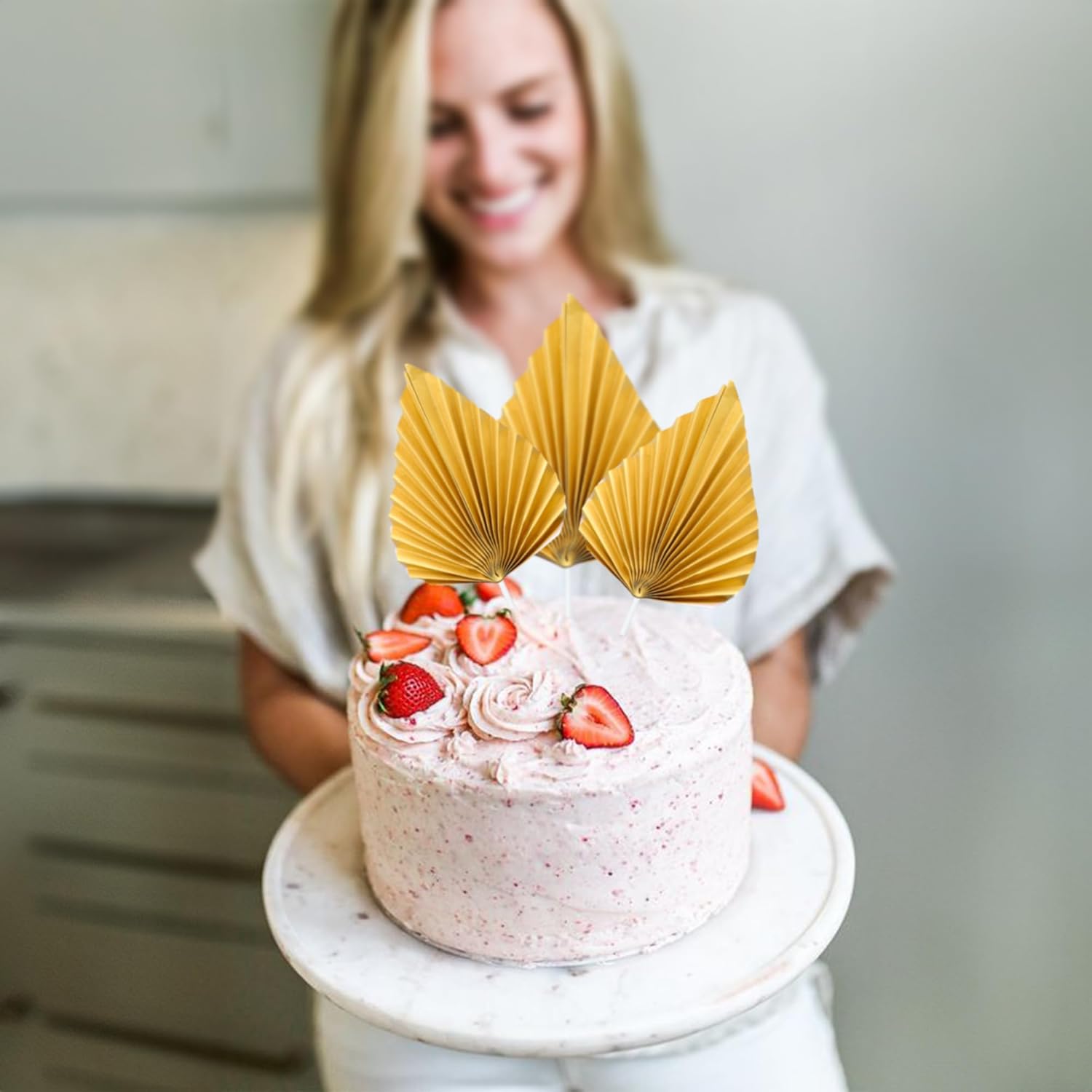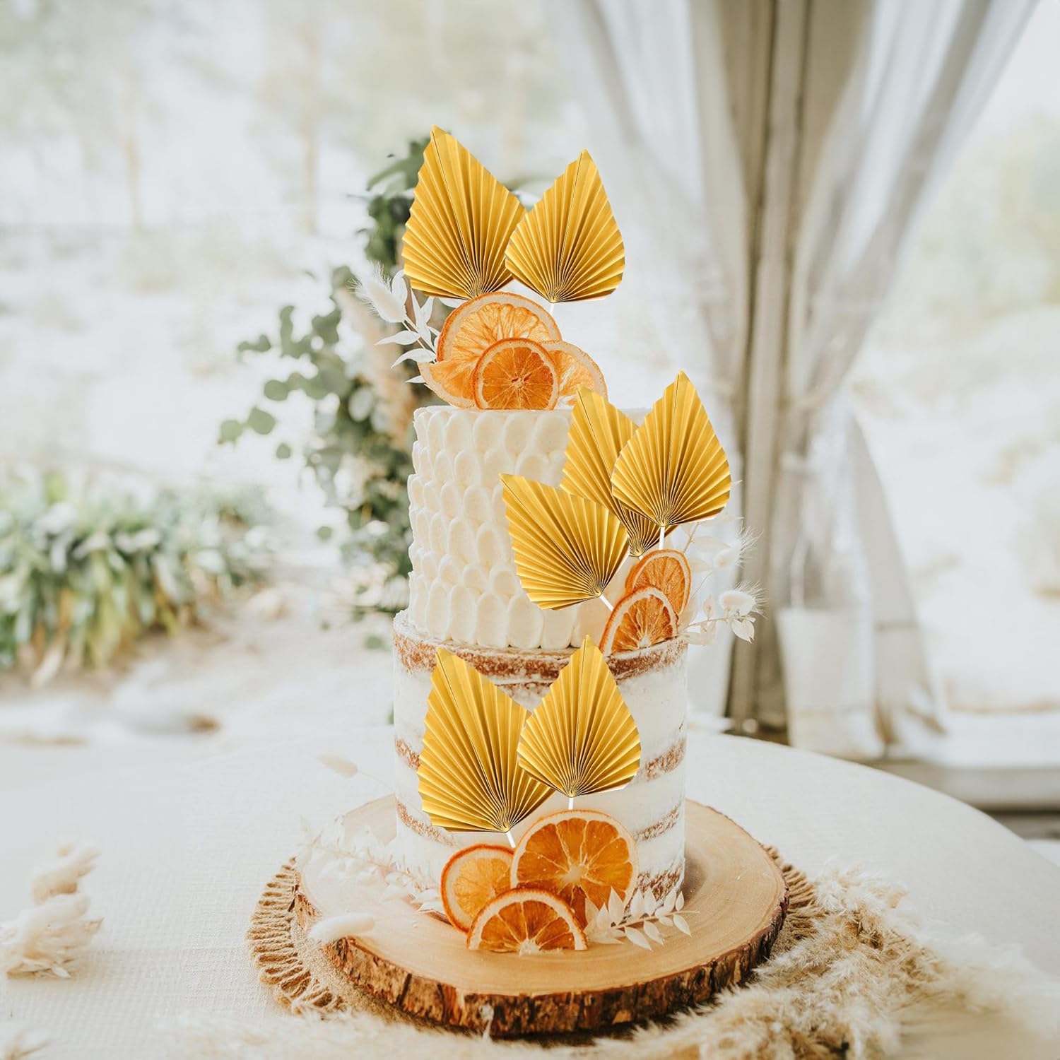 Gyufise 6Pcs Paper Palm Fan Cake Toppers Palm Leaf Fan Cake Topper Palm Spear Leaf Cupcake Toppers Cake Insert Decoration For Cake Decorating Diy Craft Project Home Wedding Party Supplies Gold