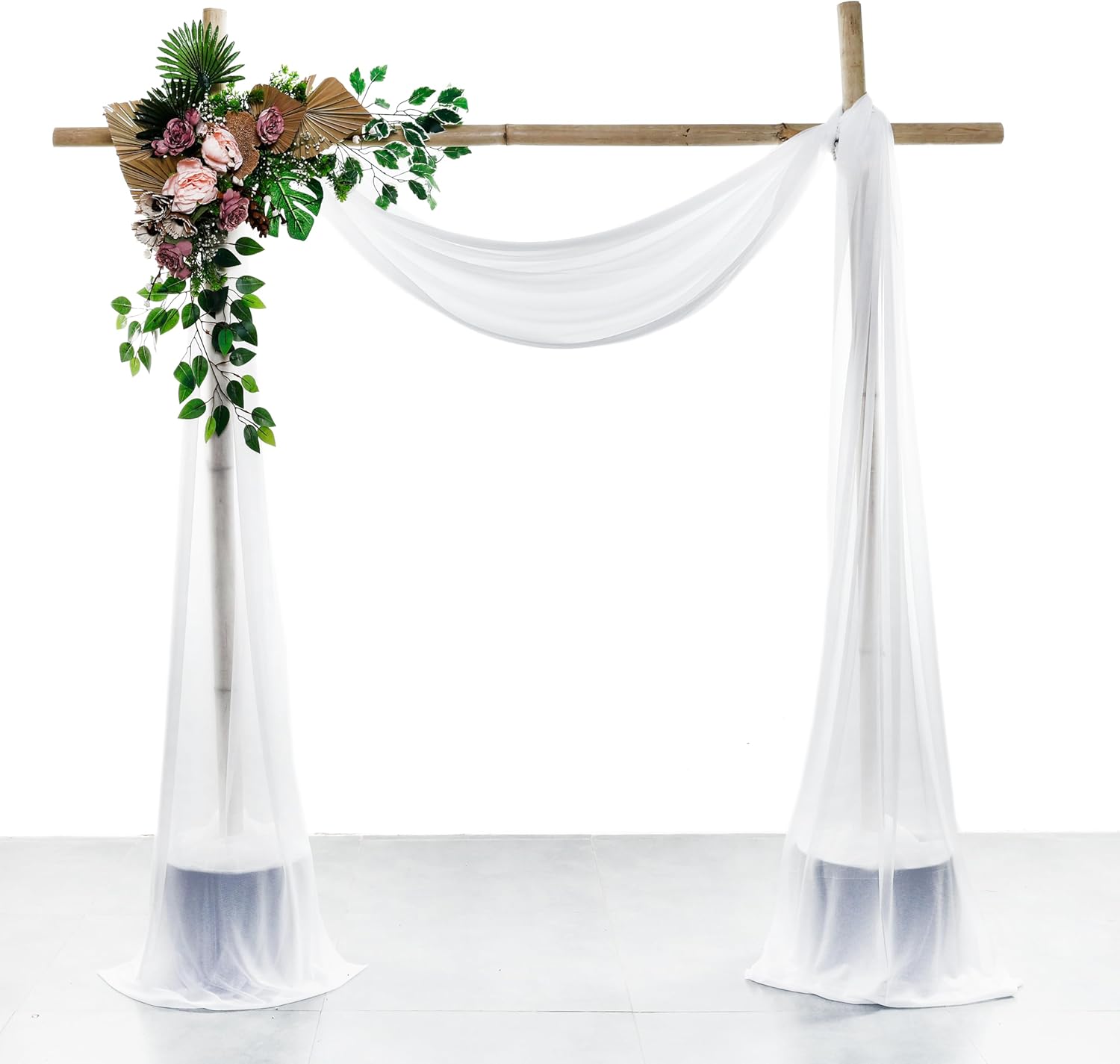 VDS Pack of 2 Panel (30 Inch X 100 Feet) Wedding Arch Draping Fabric Sheer Chiffon Fabric Drapery for Wedding Ceremony Reception Swag Backdrop Canopy Chuppah ARBO Altars Decoration (White)