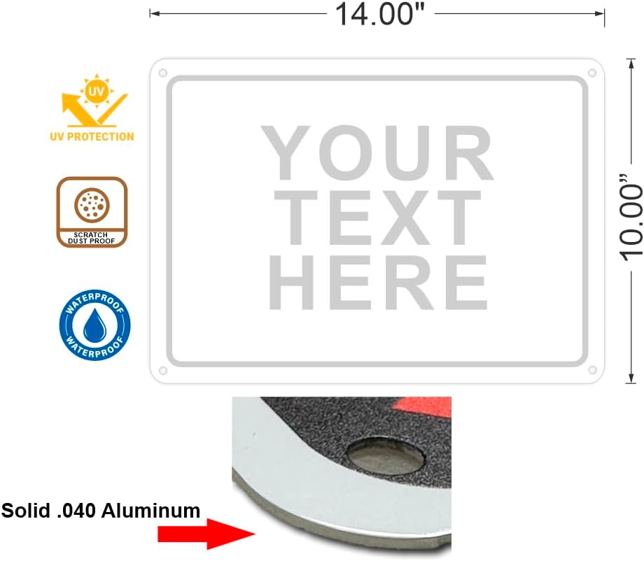 - Customizable Design: Create your own unique and original sign with long-lasting metal that wont rust or fade. Add your own text, to make the perfect custom sign for business, office, outdoor use.