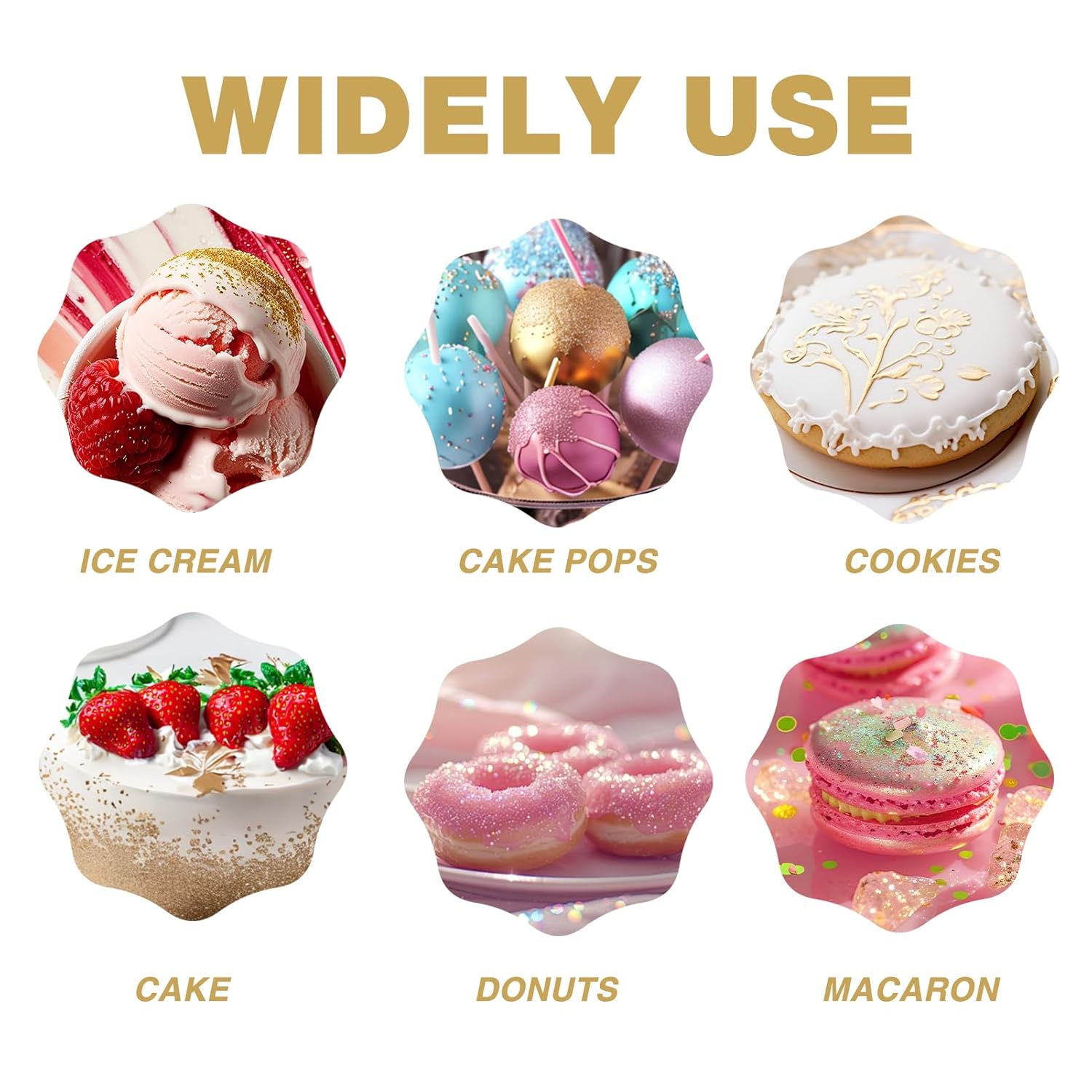 - Perfect Cake Decoration: This art decorative cake paints are perfect for cakes decorating, cookies, macarons, chocolate, fondant, and other baked goods to add a vibrant metallic finish. And perfect for on various occasions such as Valentine's Day, anniversaries, birthdays, Easter Christmas, Halloween, and Thanksgiving Day.