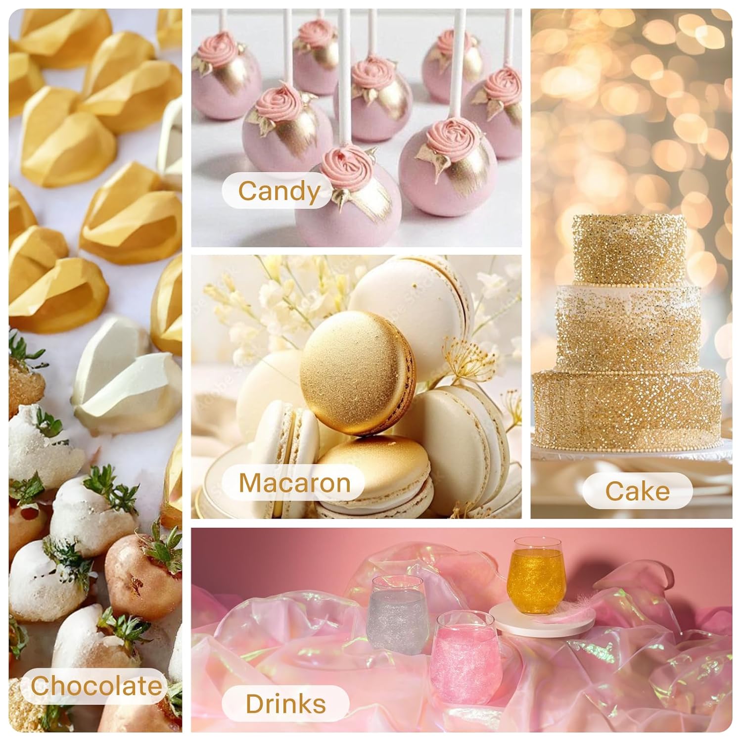 - Perfect Cake Decoration: This art decorative cake paints are perfect for cakes decorating, cookies, macarons, chocolate, fondant, and other baked goods to add a vibrant metallic finish. And perfect for on various occasions such as Valentine's Day, anniversaries, birthdays, Easter Christmas, Halloween, and Thanksgiving Day.