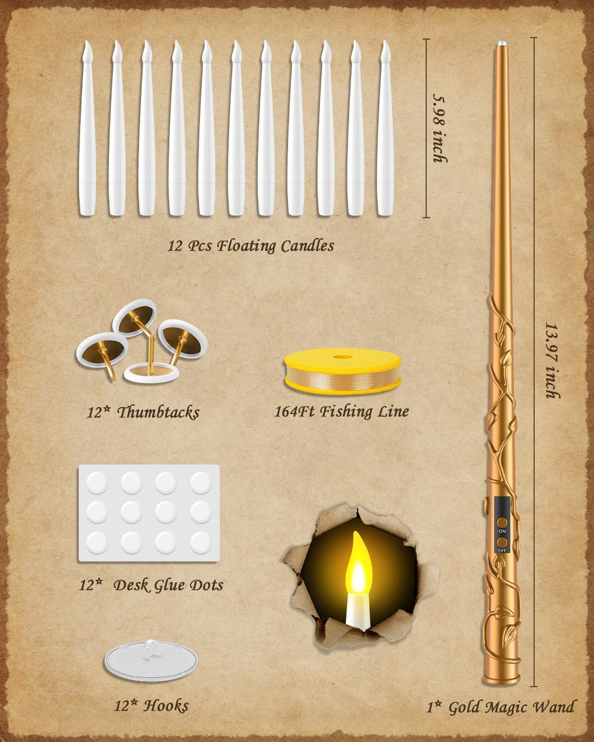 - 𝑴𝒂𝒈𝒊𝒄 𝑮𝒊𝒇𝒕𝒔 𝒇𝒐𝒓 𝑷𝒐𝒕𝒕𝒆𝒓𝒉𝒆𝒂𝒅: Wrapped in a delightful gift box, these flameless candles come with a magical wand remote and are a thrilling surprise for kids! Perfect Halloween, Christmas, Easter, birthday, wedding, magical-themed parties, or any celebration gifts for kids and adults. Let the hanging candles, controlled by the mystical wand, ignite their imagination and transport them to a realm where magic comes alive!