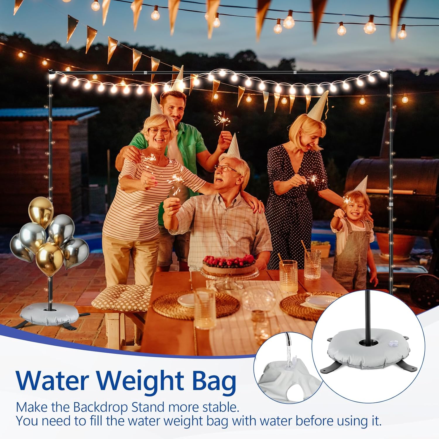 - 【Backdrop Stand for Parties】The packaging includes 4 x strip bases, 2 x retractable crossbar, 2x vertical pole, 4x spring clamps, 2x water weight bag, 8x tent nails and 1 x carry bag. The backdrop stand is made of high quality metal , robust and durable, ensuring lasting performance and stability.