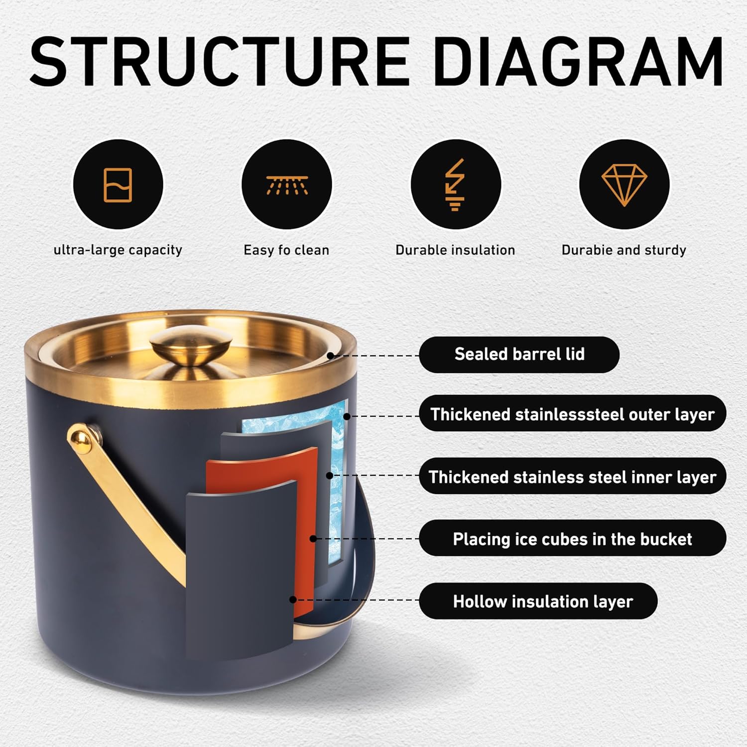 - 1. 3-liter extra-large capacity insulated thickened stainless steel ice bucket, capable of holding more beverages. With a wide-mouth design, it's easy to grab and place items, making it perfect for parties.