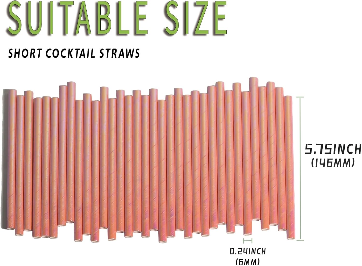 - Cocktail Straws: Paper straws are 5.75"(146mm) in length and 0.24"(6mm) in diameter,suitable for short cup beverages such as coffee, cocktails, milk.