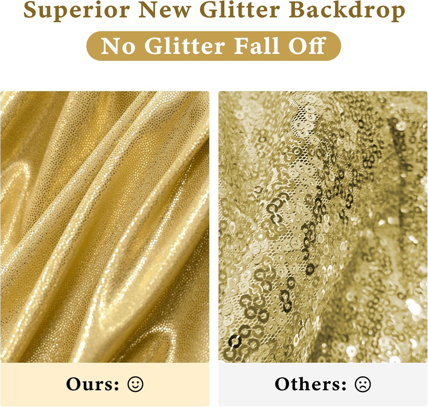 - Not See Through 10FT Sequin Glitter Drape Curtains:Your package will come with 4 panels gold sequin glitter photography backdrop drapes. Each gold background panels measures 5ft width and 10ft height.Entire backdrop curtain measures 20ft x 10ft.