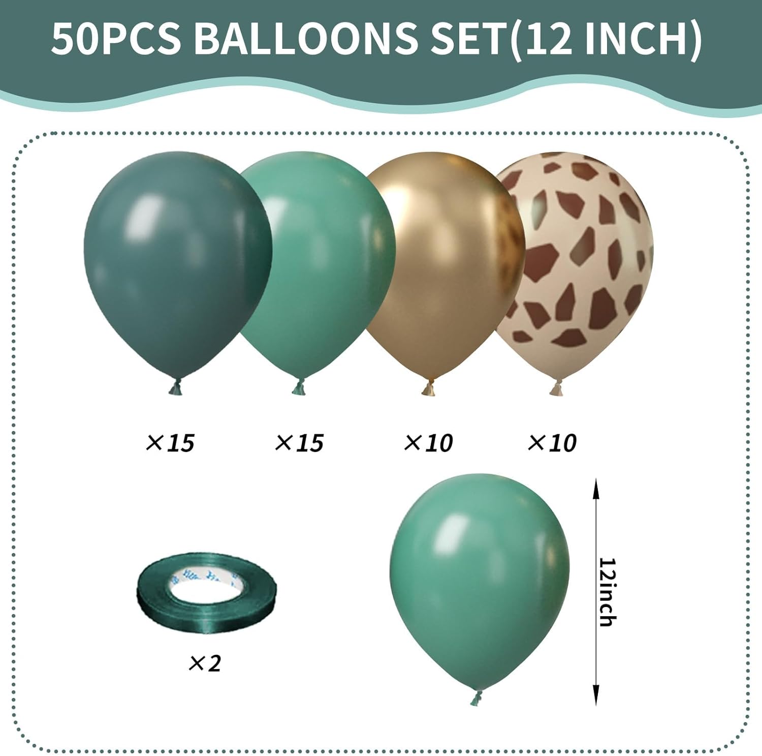- Dark Green Gold Balloons: Package comes with 12 inch dark green balloons (15 pcs), sage green balloons (15 pcs), metallic gold balloons (10 pcs),deer print balloons(10 pcs),green balloon ribbon (2 rolls). Whether you're celebrating a birthday, party, or any special event, these balloons will add a festive and joyful touch.