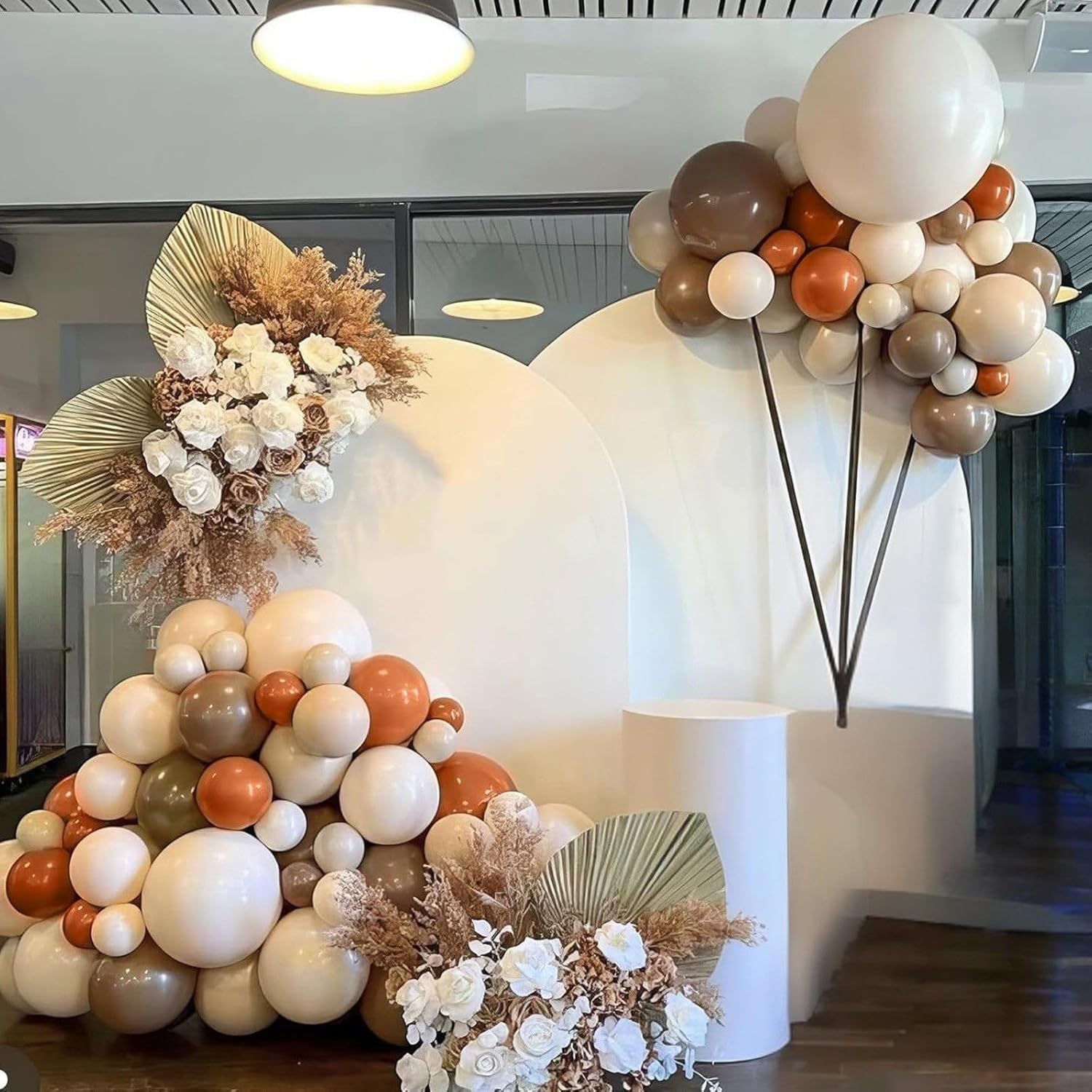 - Burnt Orange Balloons: Package comes with 12 inch orange balloons(14 pcs),nude balloons (14 pcs), brown balloons (14 pcs),champagne gold balloons (8 pcs),white balloon ribbon (2 rolls). Whether you're celebrating a birthday, party, or any special event, these balloons will add a festive and joyful touch.