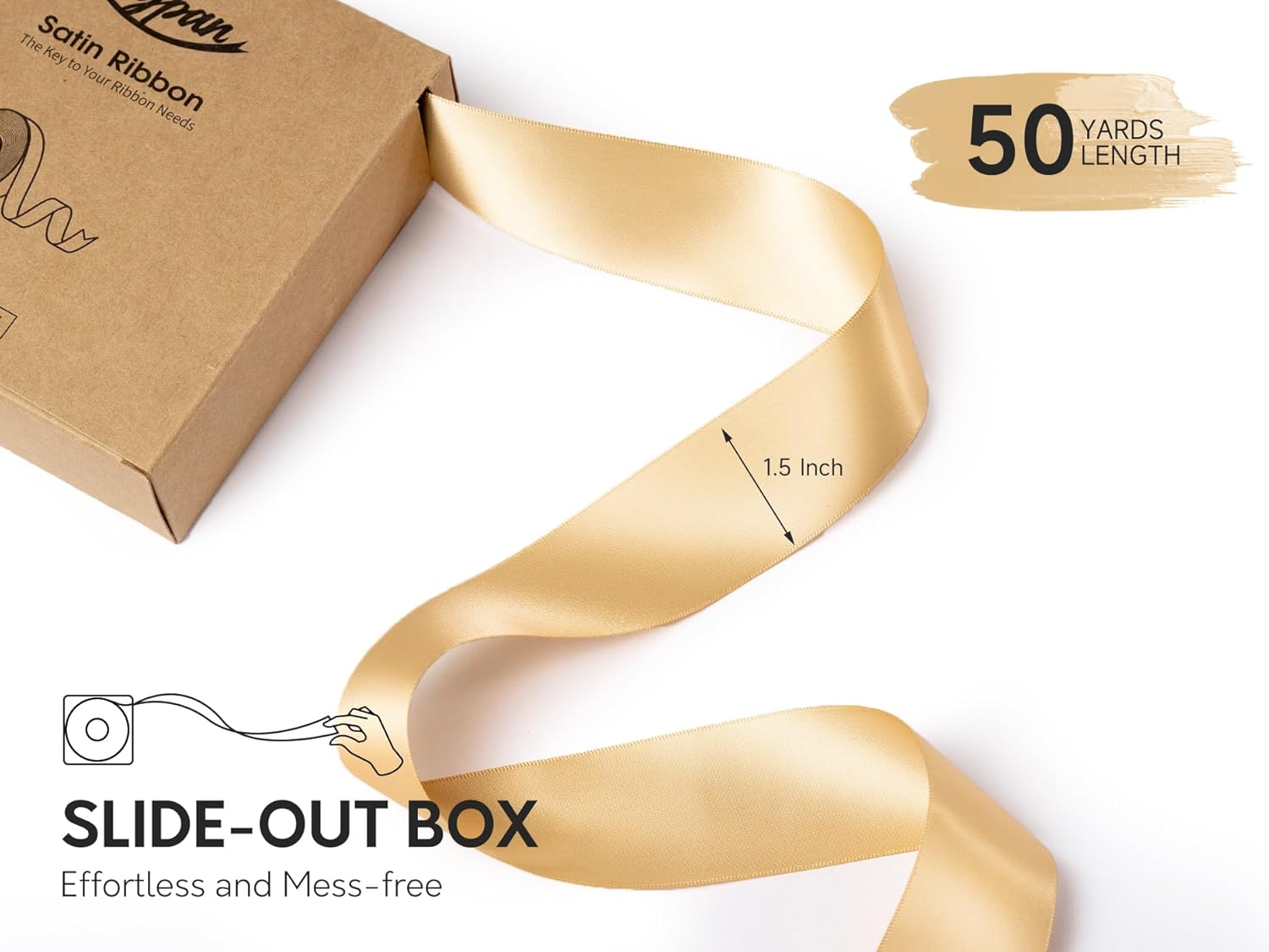 - SLIDE-OUT PACKAGING BOX: This satin ribbon comes in a clever pull-out paper box packaging, saving you time and making the usage process more seamless. The refined packaging box also makes an elegant gift for your friends and loved ones