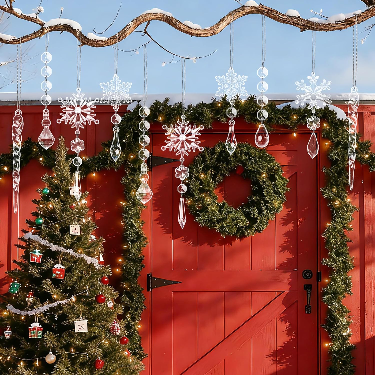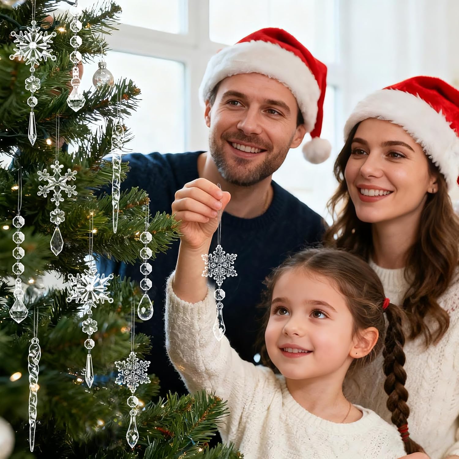 - Christmas Ornaments Set: Our 30pcs crystal Christmas ornaments comes with 3 styles,4 small icicles, 4 medium icicles, 4 large icicles, 4 small snowflakes, 2 medium snowflakes, 4 large snowflakes, 4 small water drop-shaped hangings,and 4 large water drop-shaped hangings. .Perfectfor adding a touch of elegance and sparkle for your Christmas tree decorations