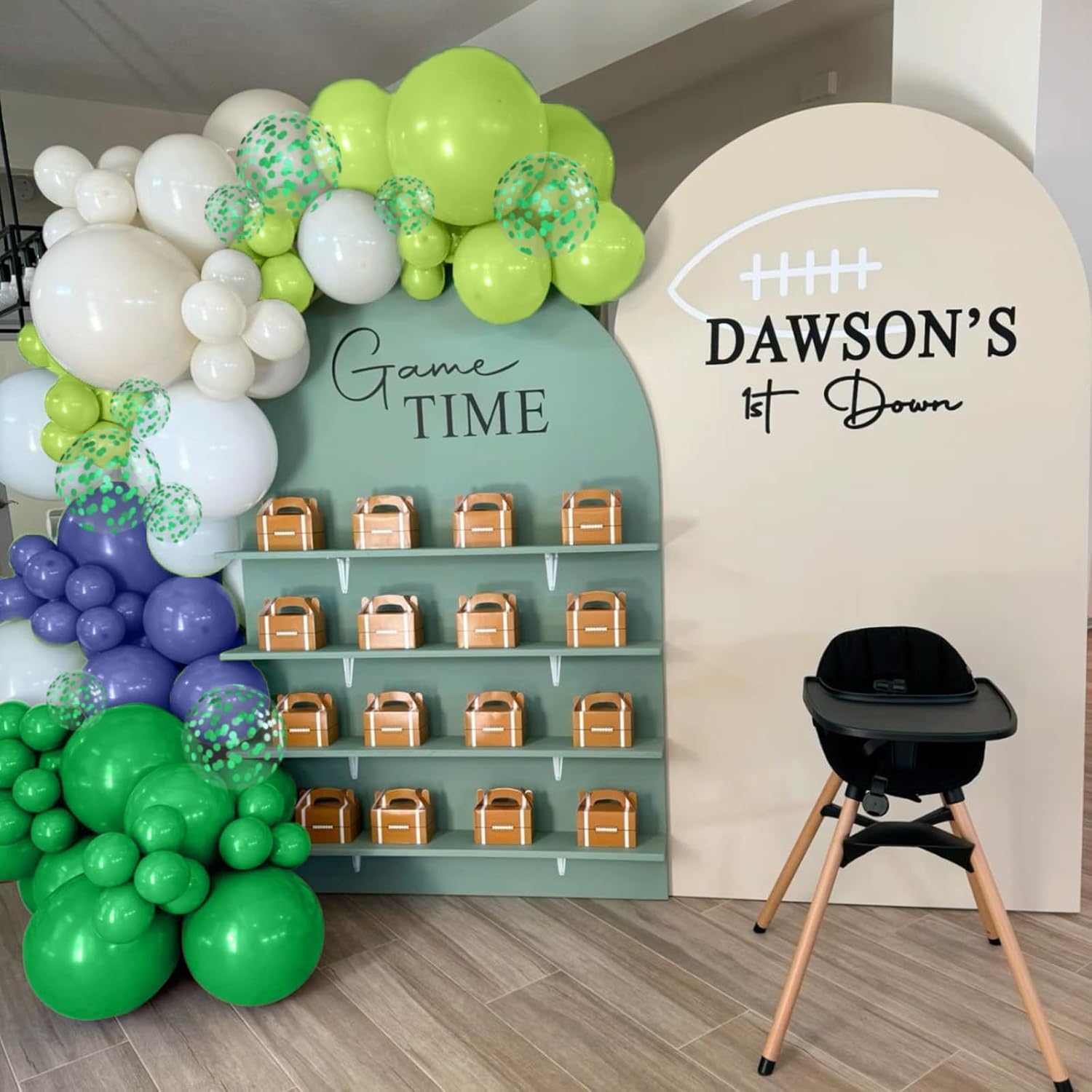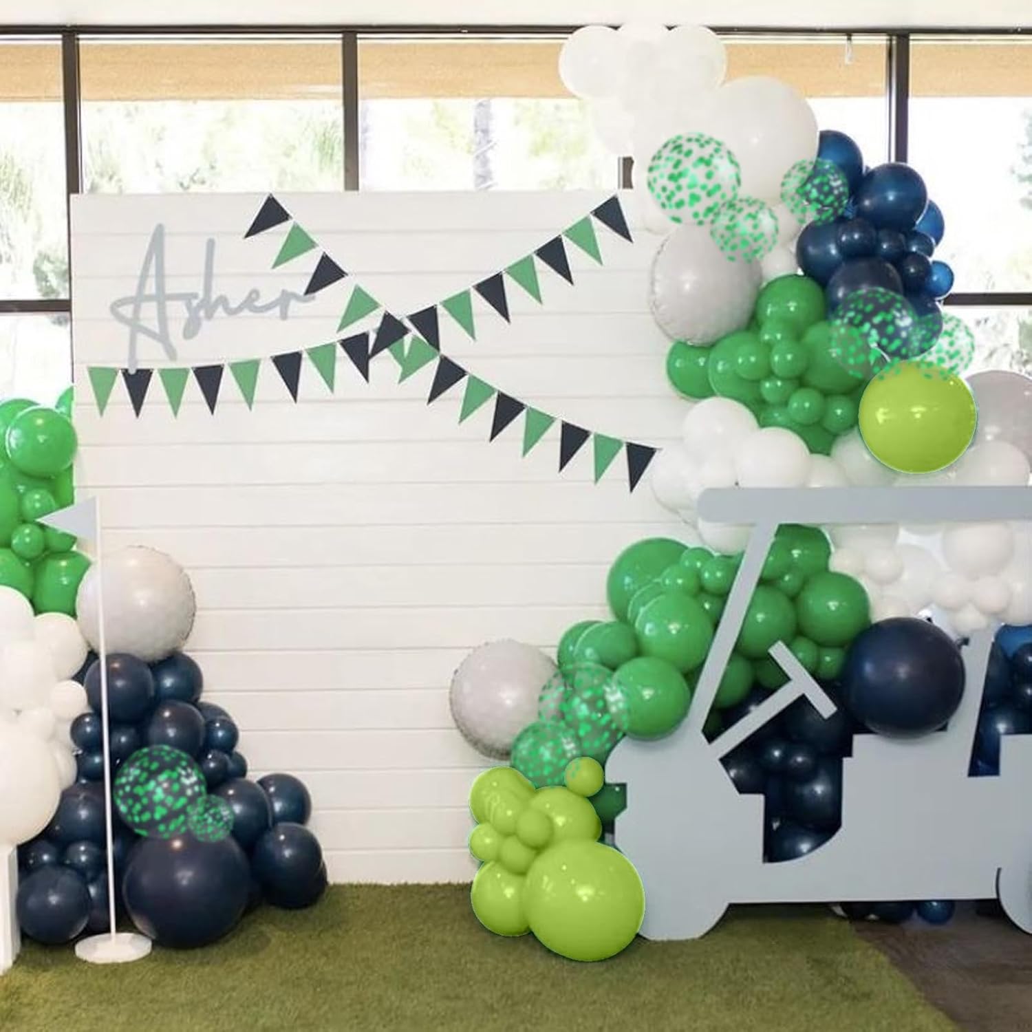 - Navy Blue Green Balloons: Package comes with 12 inch dark greeen balloons(8 pcs), fruit green balloons (8 pcs), navy blue balloons(7 pcs), white balloons (7 pcs),green confetti balloons (5 pcs), white balloon ribbon (1 roll). Just enjoy your party with these navy blue green balloons.